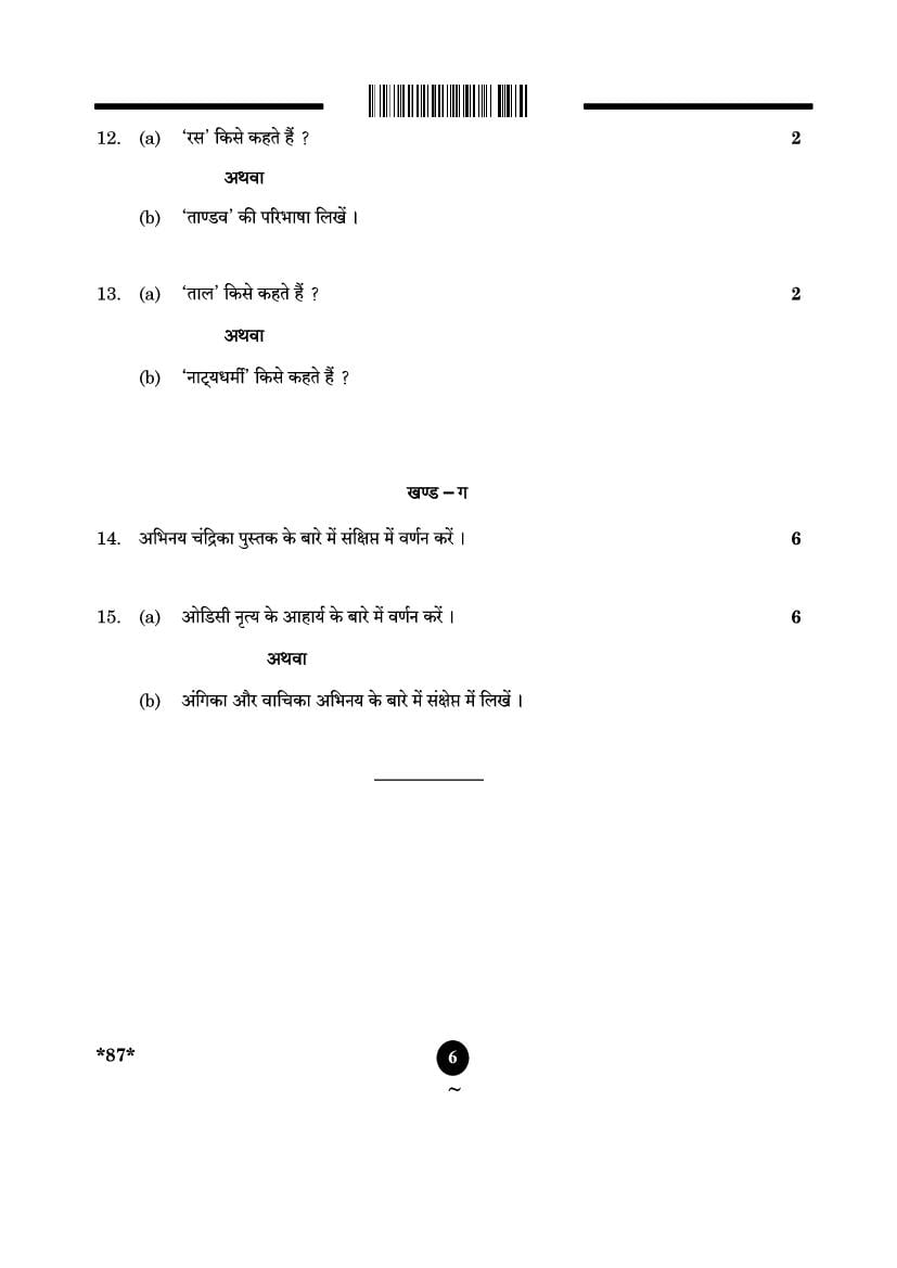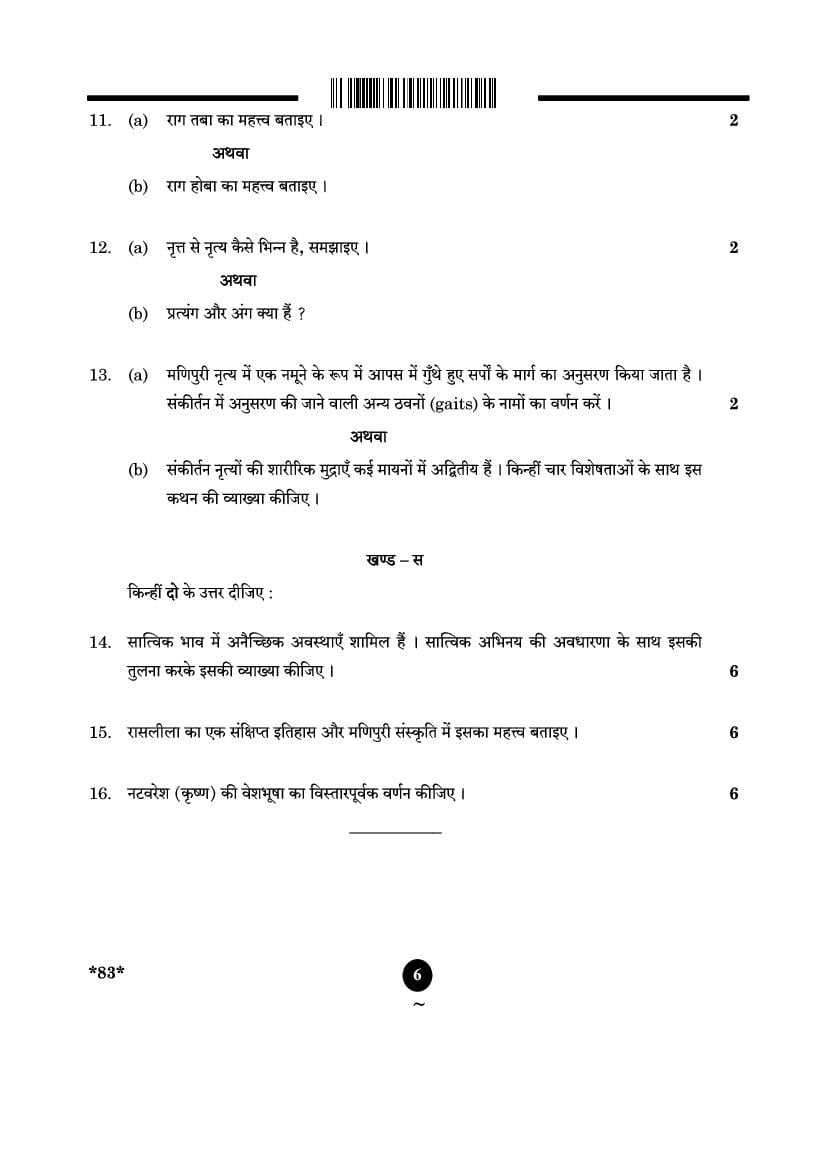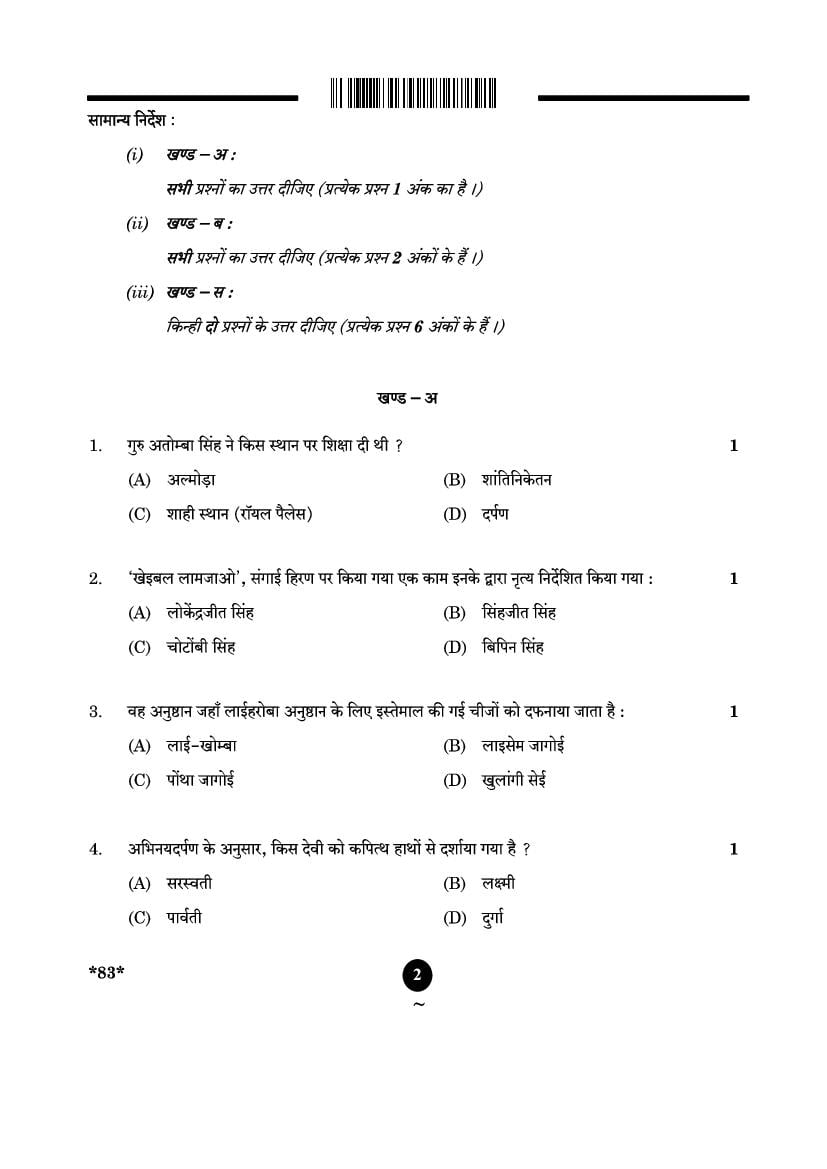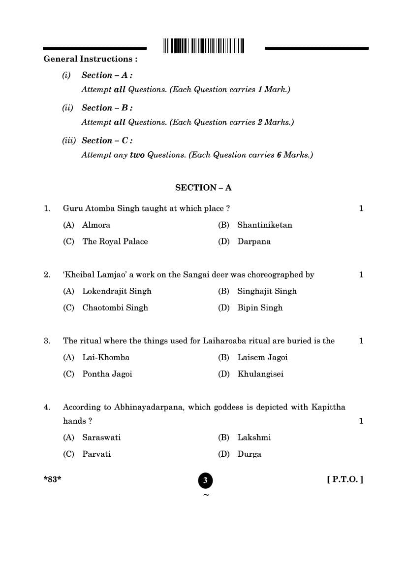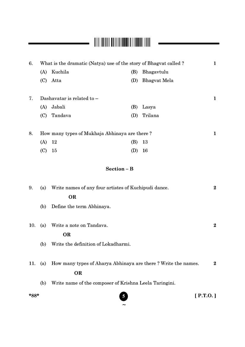 The CBSE question paper for class 12 Dance of the exam held in past years is as follows.