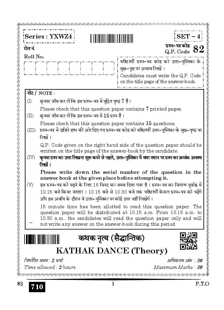 | Study Material Here | CBSE Class 12 Dance Previous Year Question Paper |