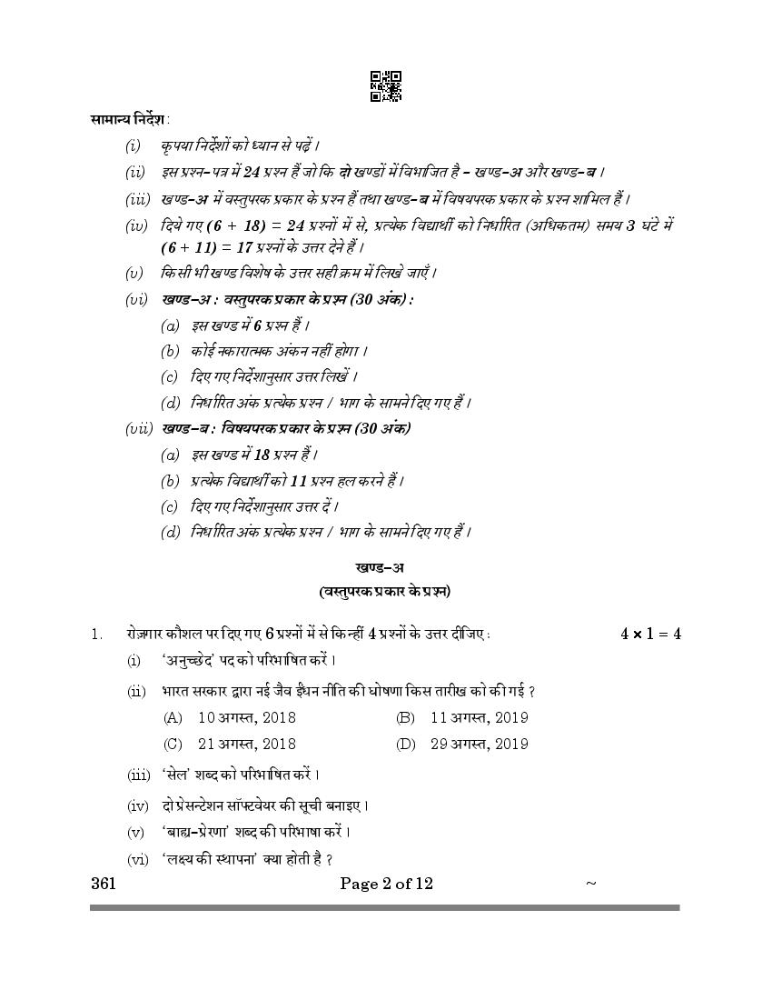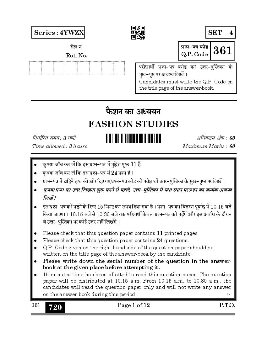 CBSE Class 12 Fashion Studies Question Paper 2024 PDF Download Link – Click Here to Download Question Paper