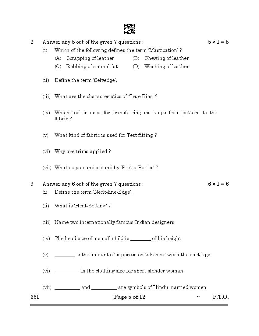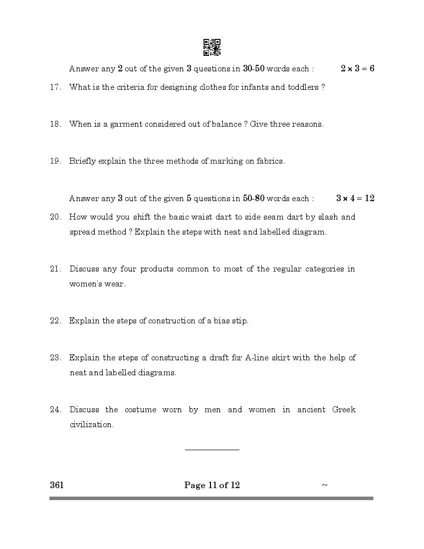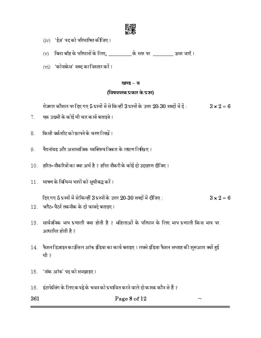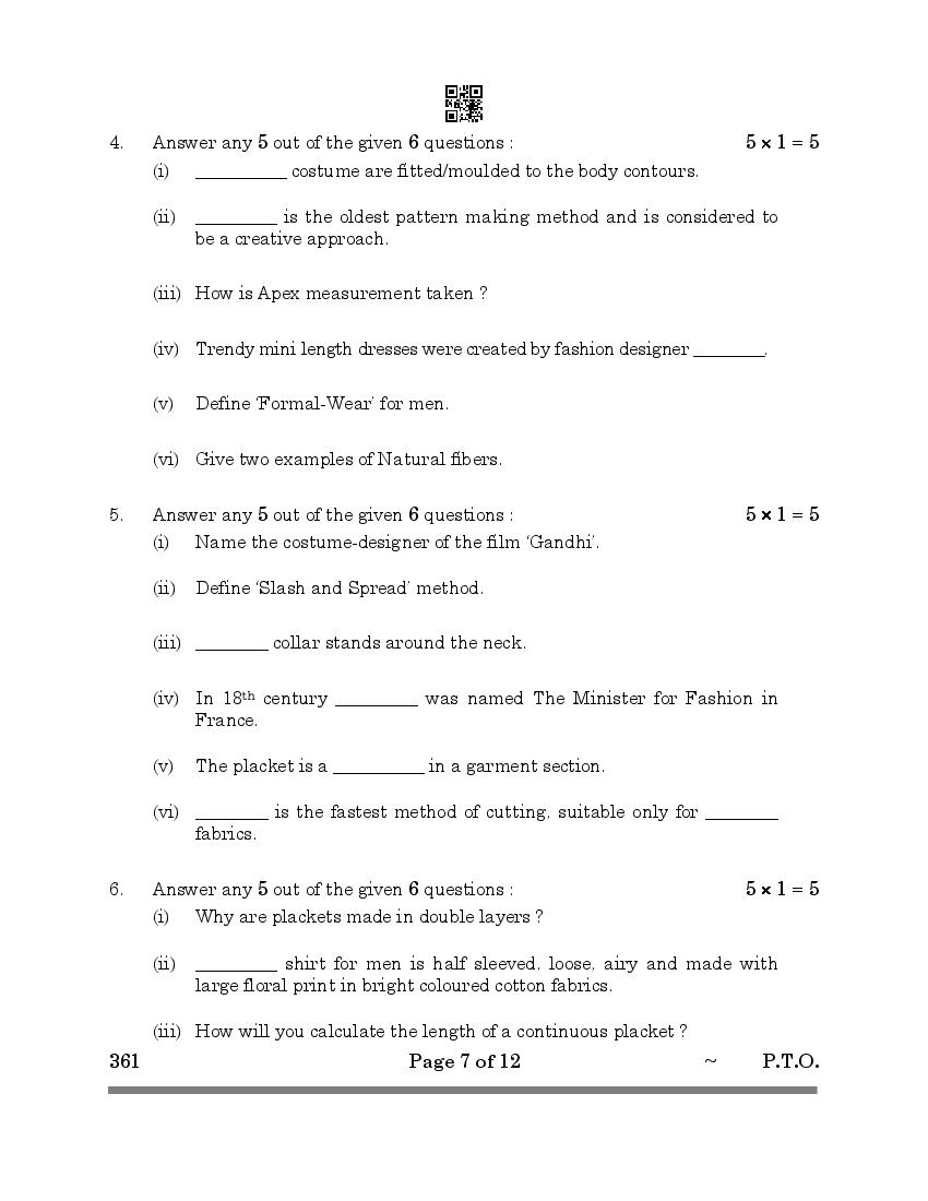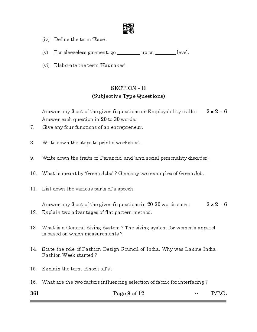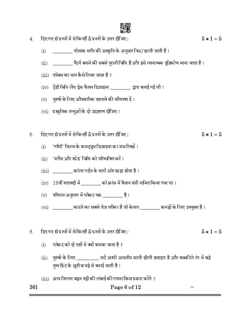 More Class 12 Fashion Studies Question Paper