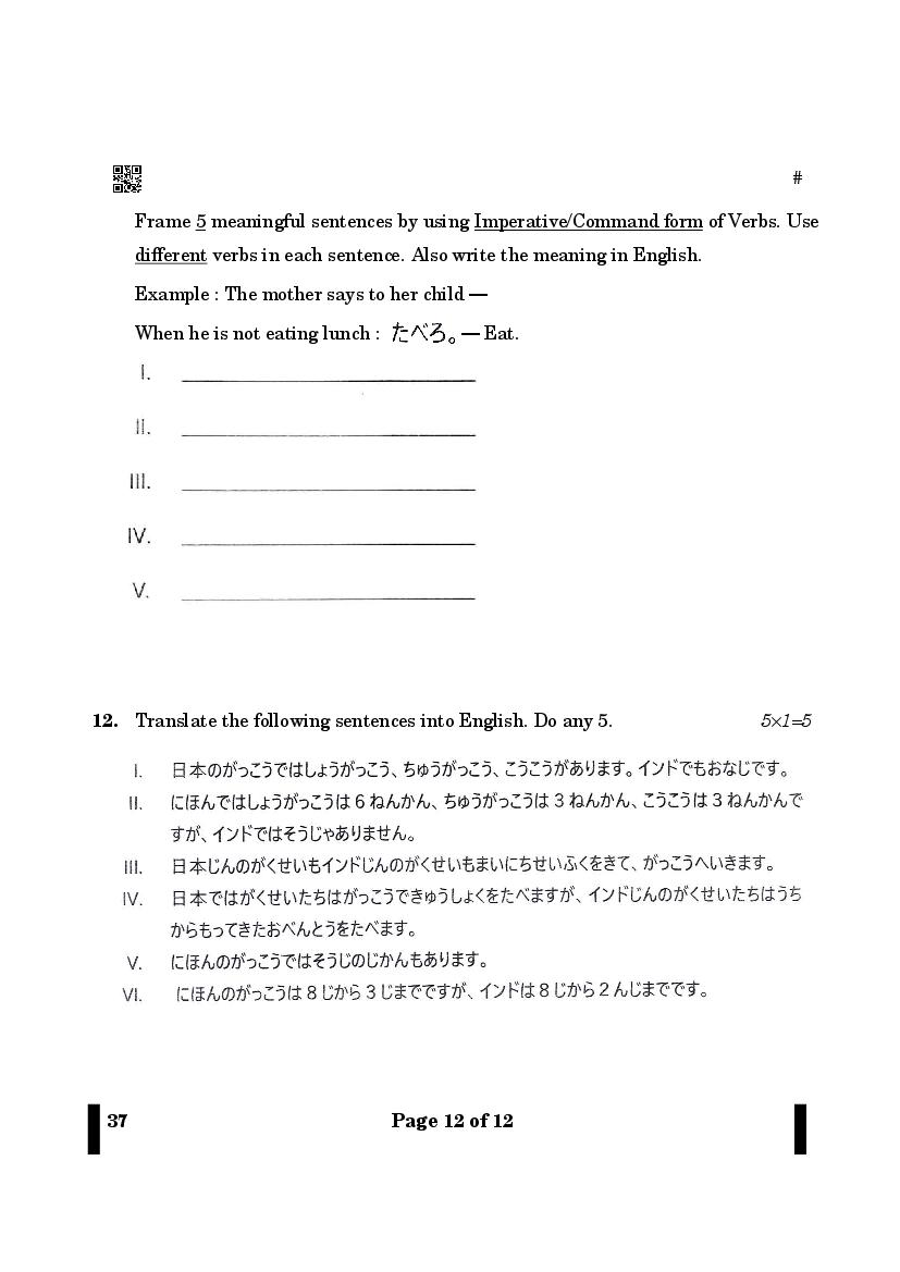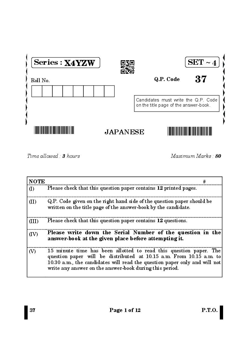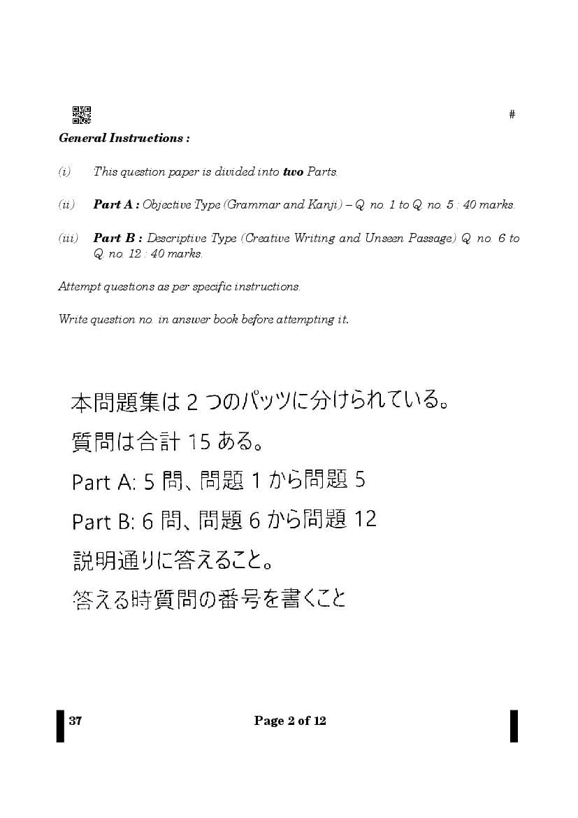 CBSE Class 12 Question Paper 2025 Japanese View Download
