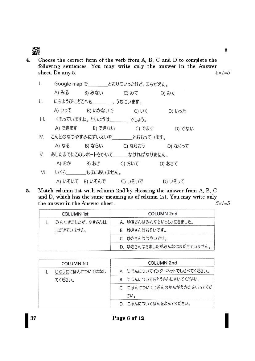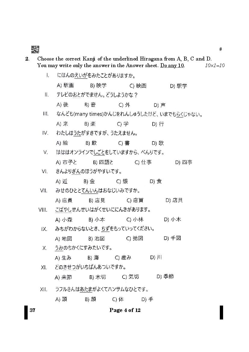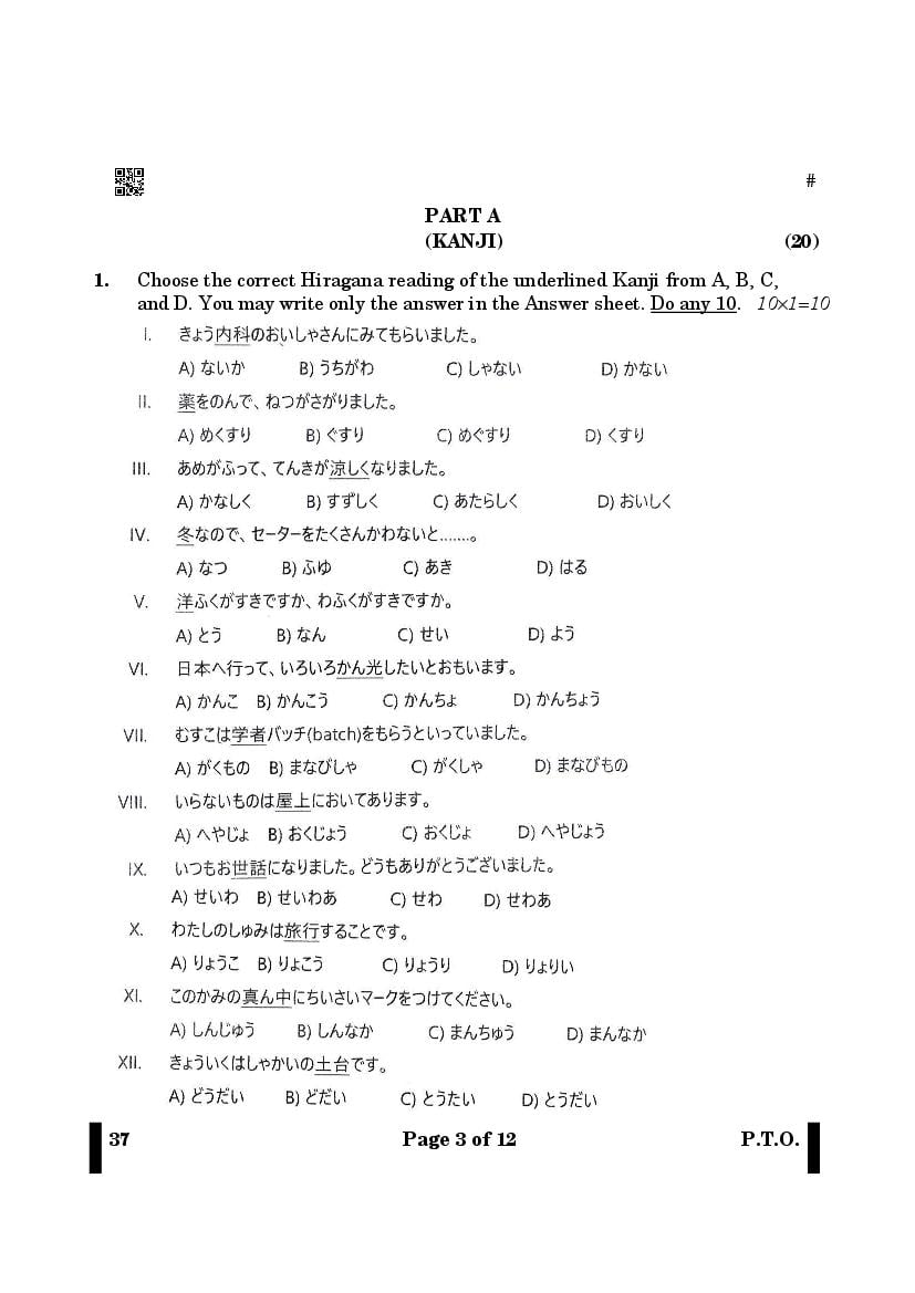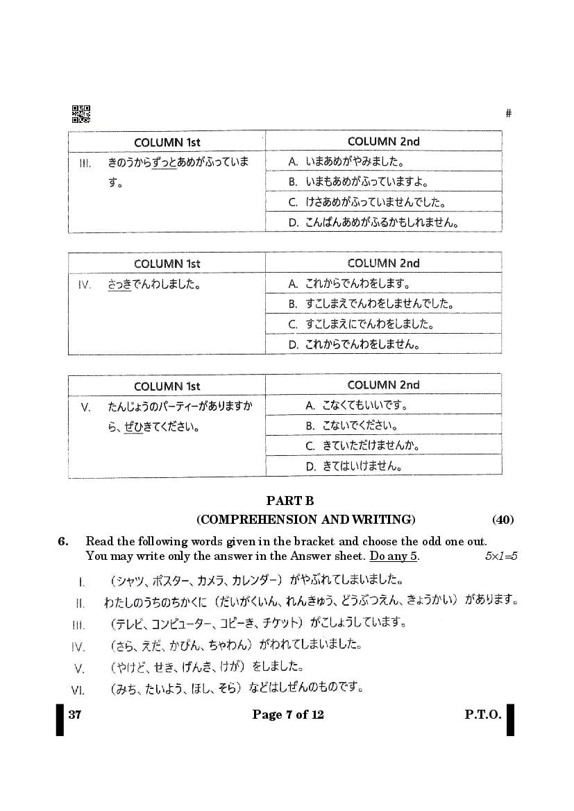 More Class 12 Japanese Question Paper