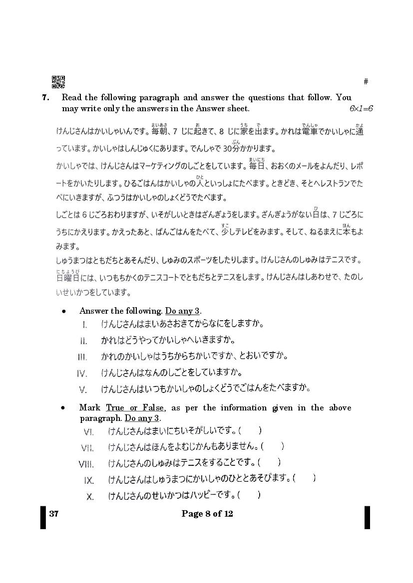 CBSE Class 12 Japanese Question Paper 2023 PDF Download Link – Click Here to Download Question Paper