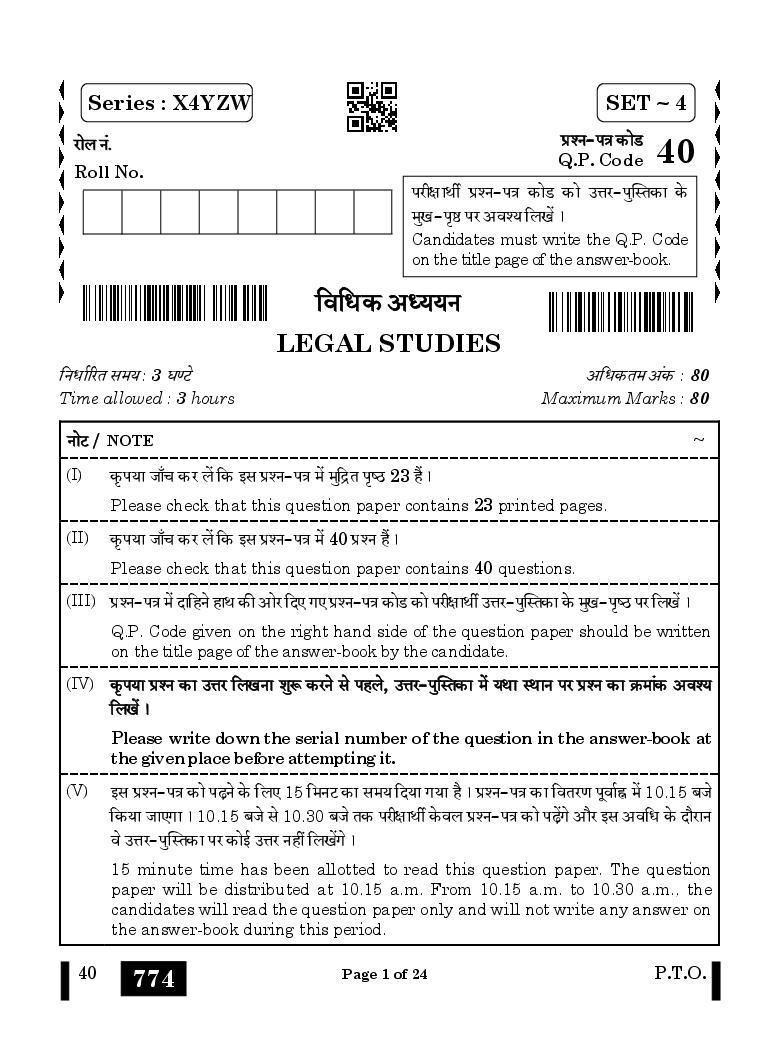| Study Material Here | CBSE Class 12 Legal Studies Previous Year Question Paper |