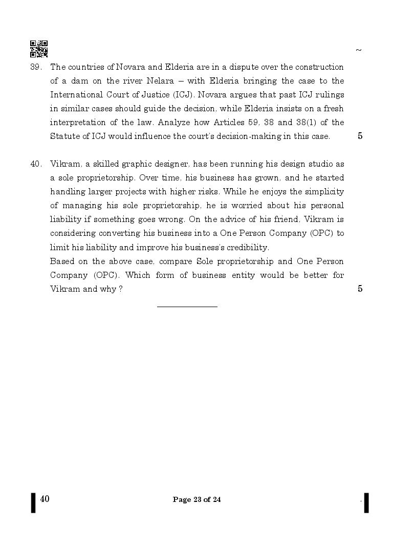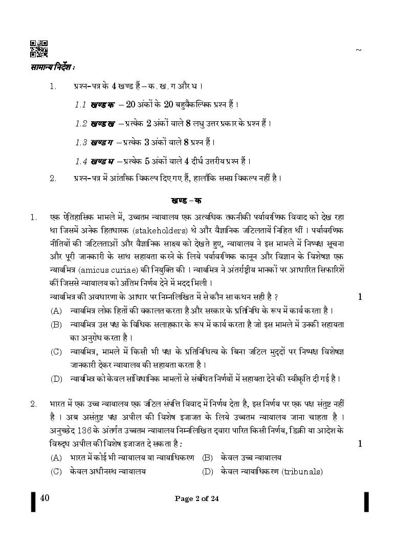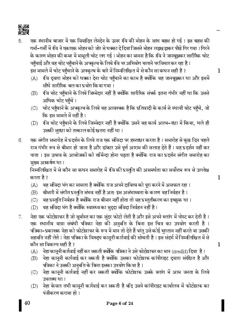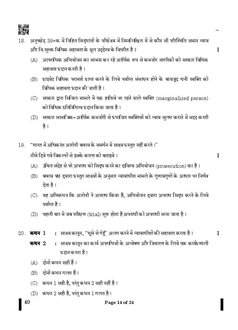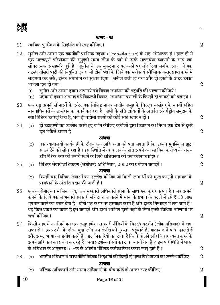 CBSE Class 12 Legal Studies Question Paper 2024 PDF Download Link – Click Here to Download Question Paper