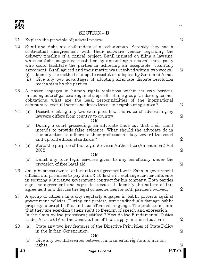 CBSE Class 12 Legal Studies Question Paper 2026