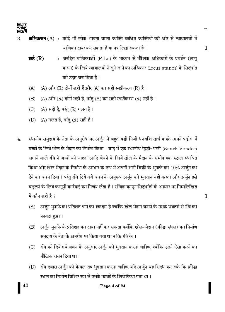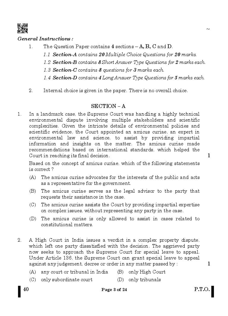The CBSE question paper for class 12 Legal Studies of the exam held in past years is as follows.