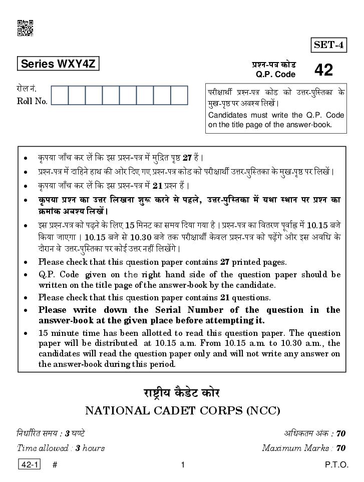 The CBSE question paper for class 12 NCC of the exam held in past years is as follows.