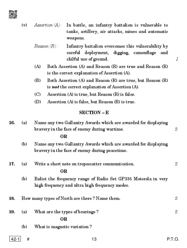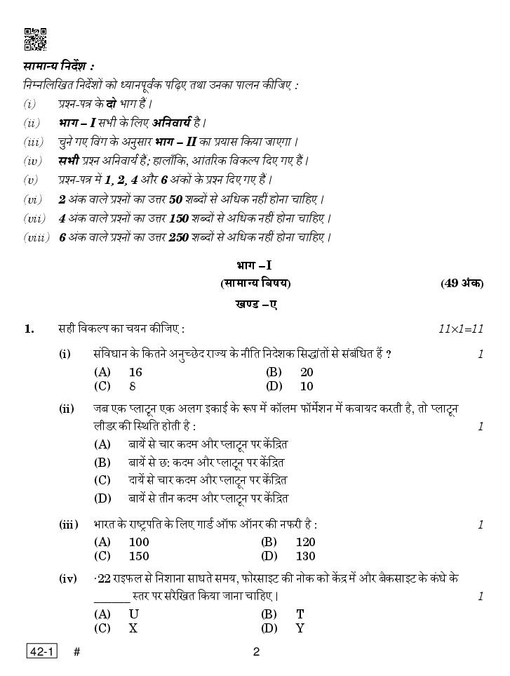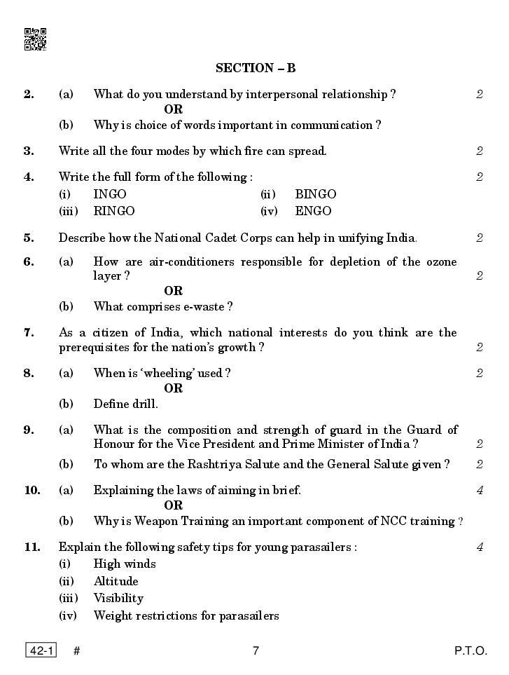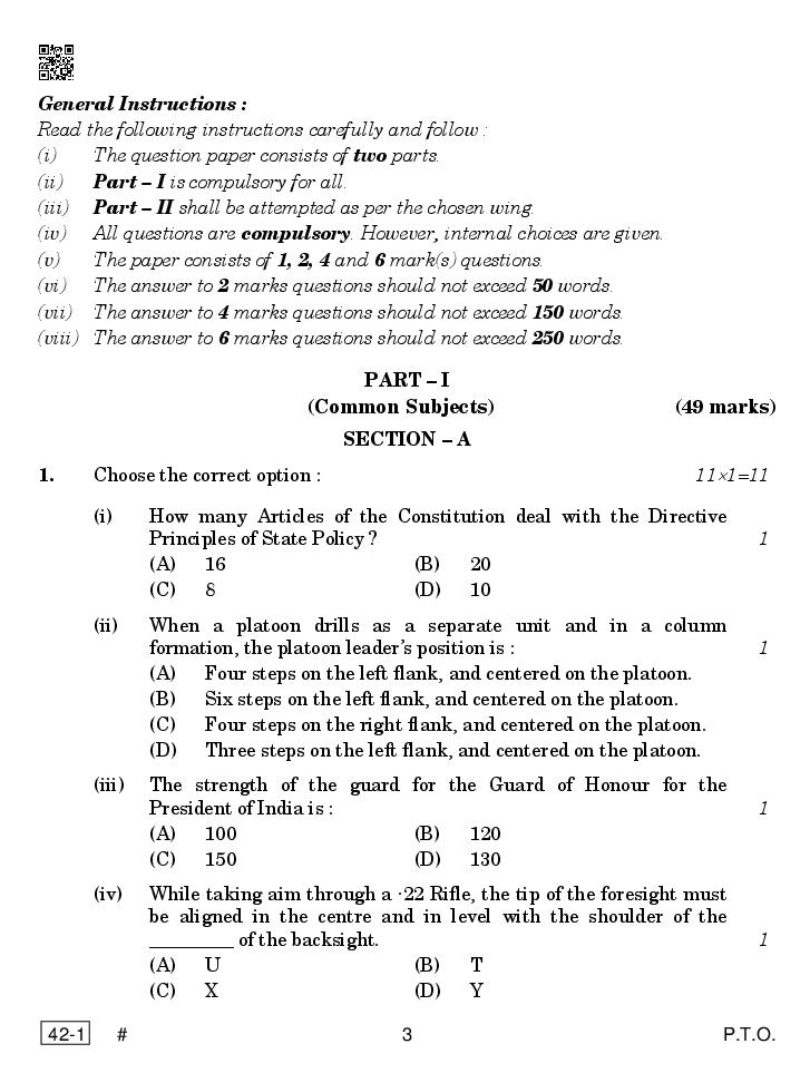 CBSE Class 12 NCC Question Paper 2023 PDF Download Link – Click Here to Download Question Paper