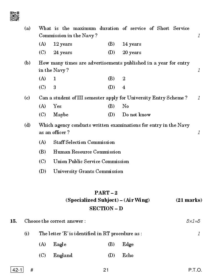 The complete NCC question paper is as follows. You can read all questions asked in last year’s test here at aglasem.com.