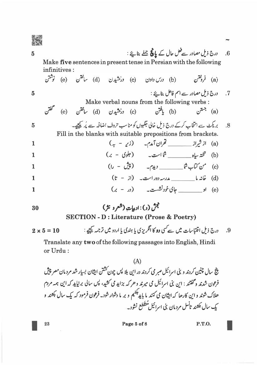 | Study Material Here | CBSE Class 12 Persian Previous Year Question Paper |