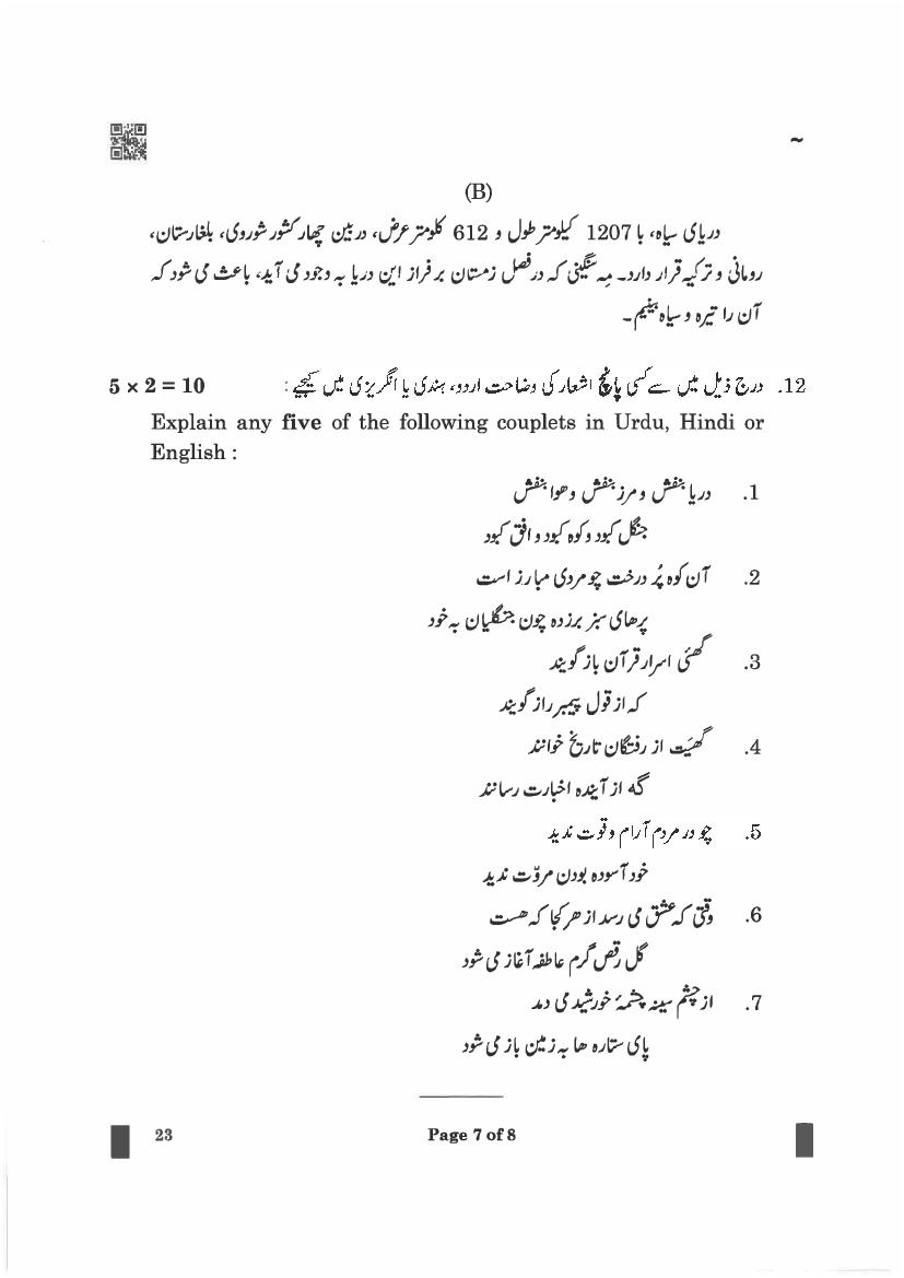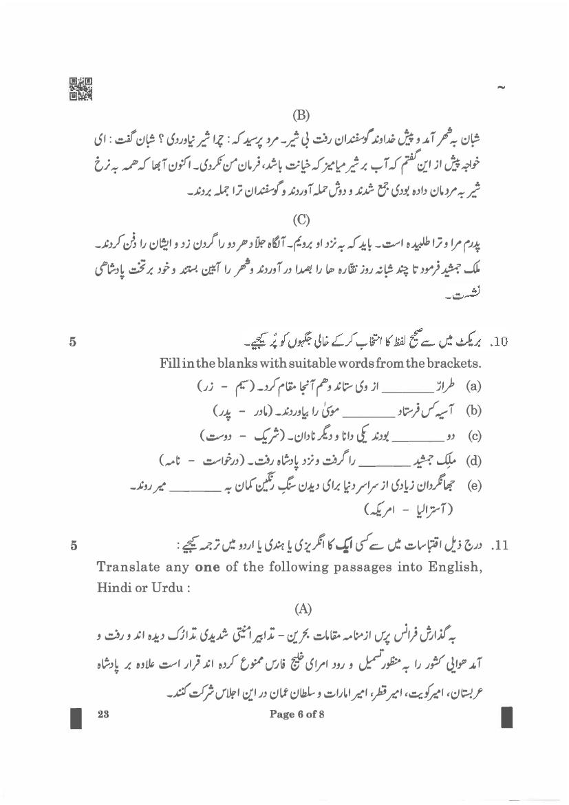 CBSE Class 12 Persian Question Paper 2023 PDF Download Link – Click Here to Download Question Paper