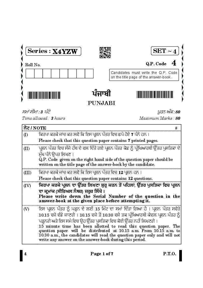 | Study Material Here | CBSE Class 12 Punjabi Previous Year Question Paper |