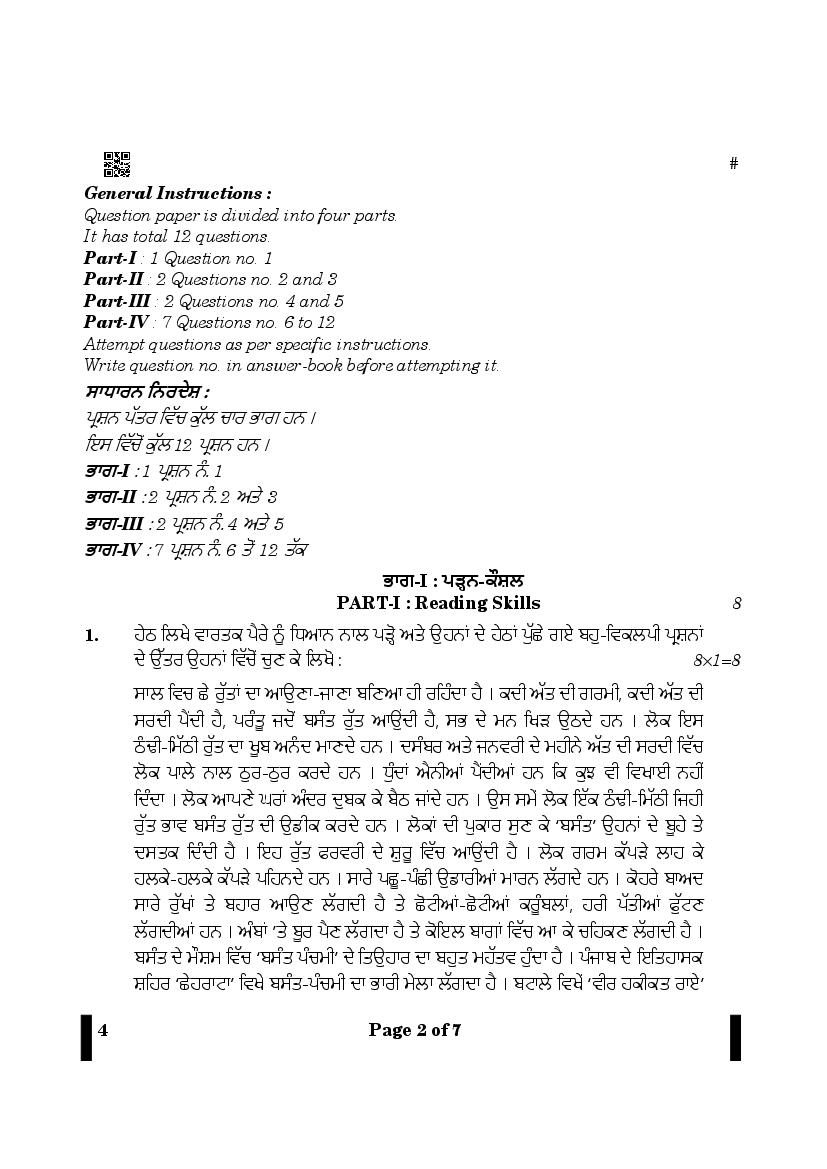 The CBSE question paper for class 12 Punjabi of the exam held in past years is as follows.