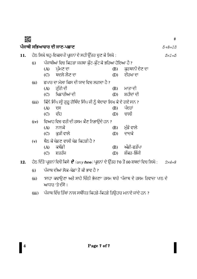More Class 12 Punjabi Question Paper