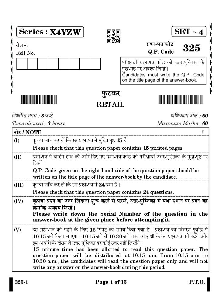 CBSE Class 12 Question Paper 2025 Retail View Download