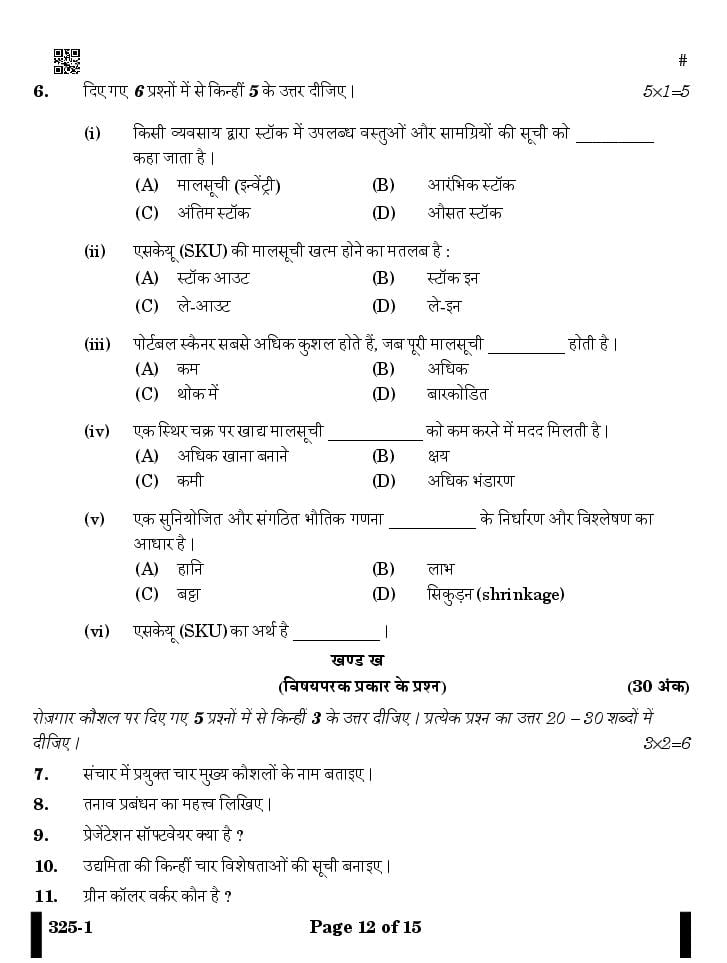 The CBSE question paper for class 12 Retail of the exam held in past years is as follows.