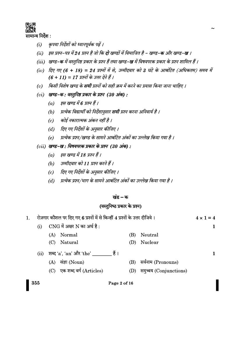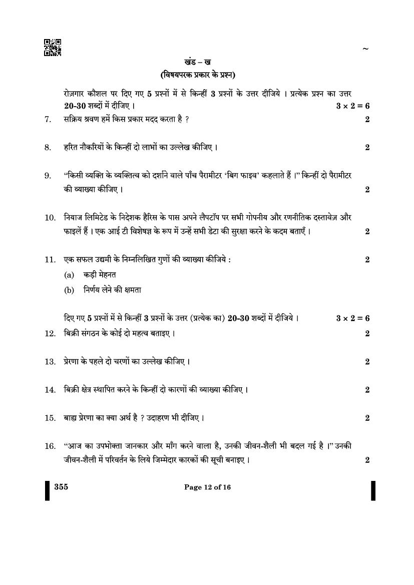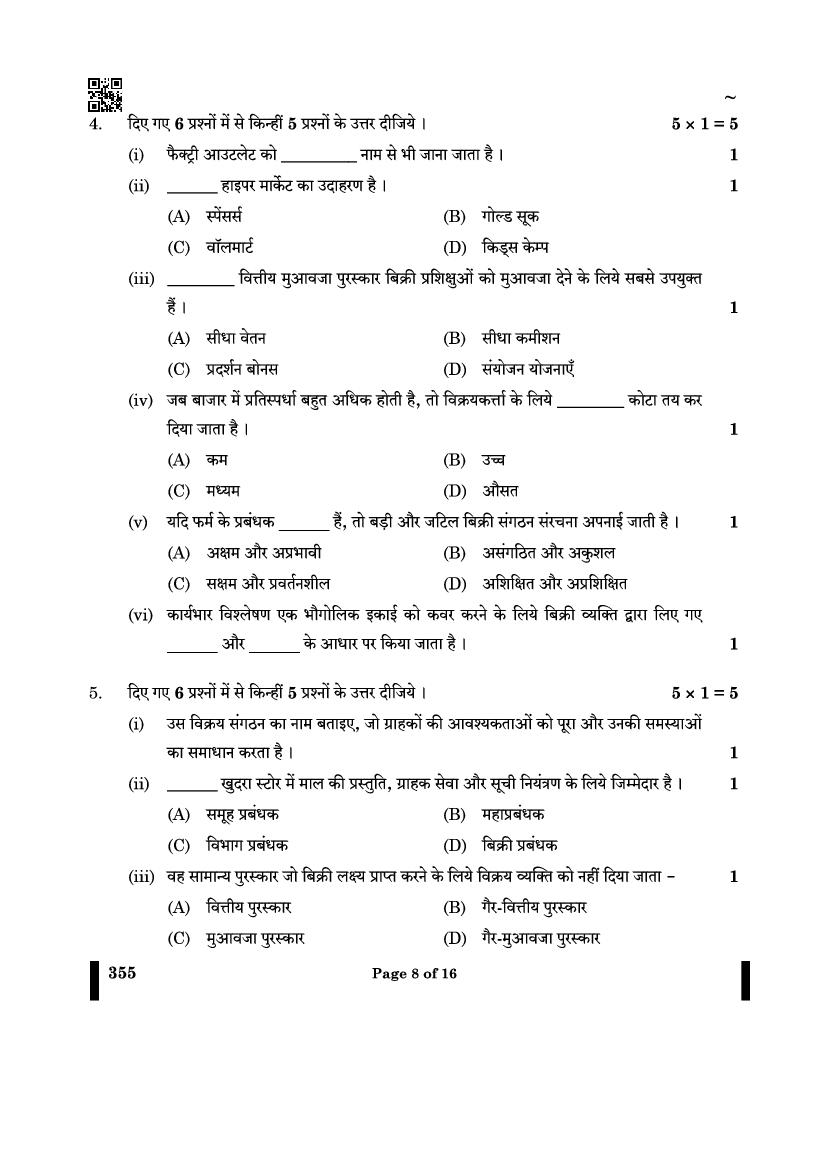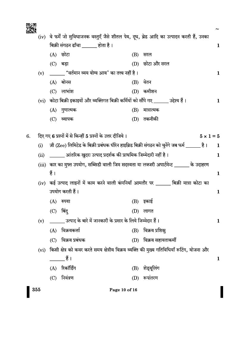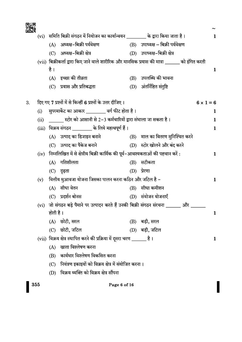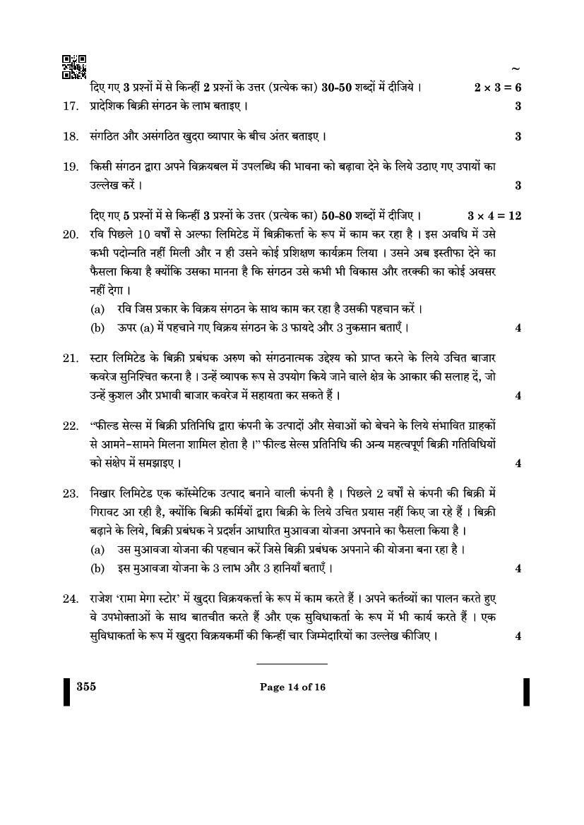CBSE Class 12 Question Paper 2025 Salesmanship View Download