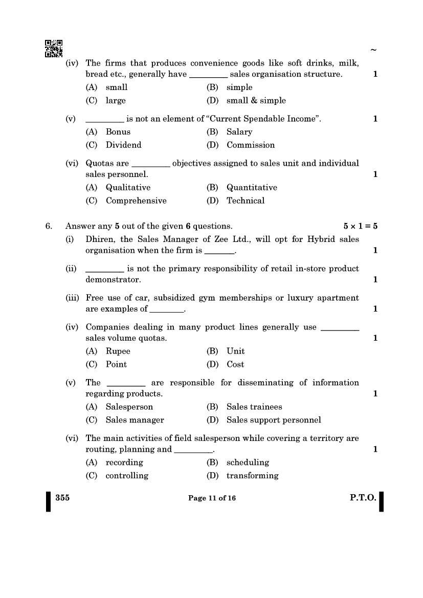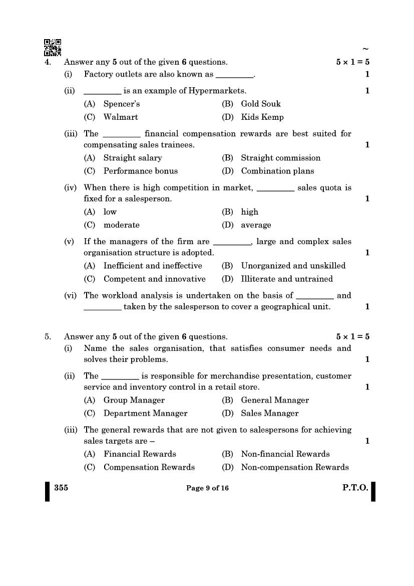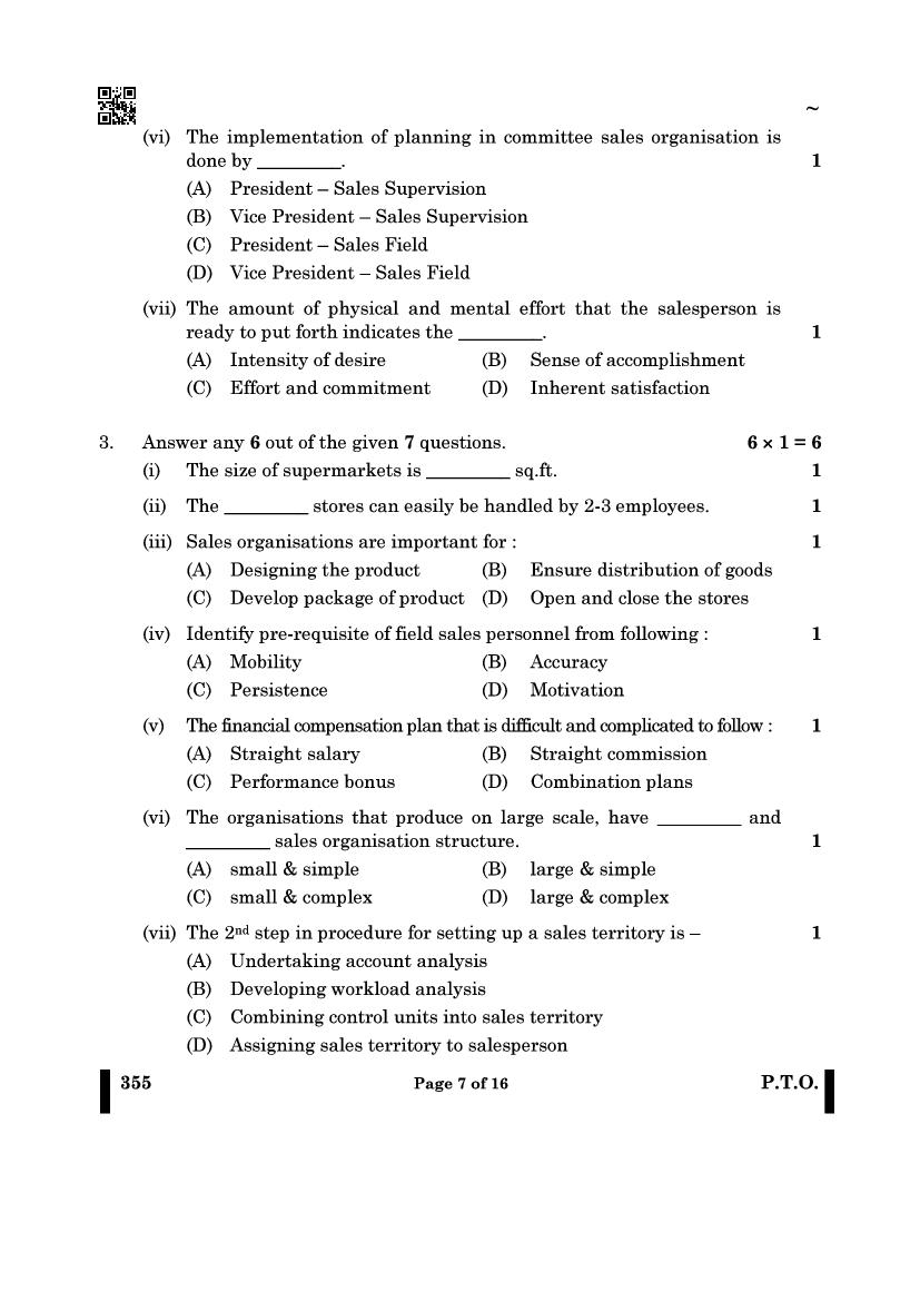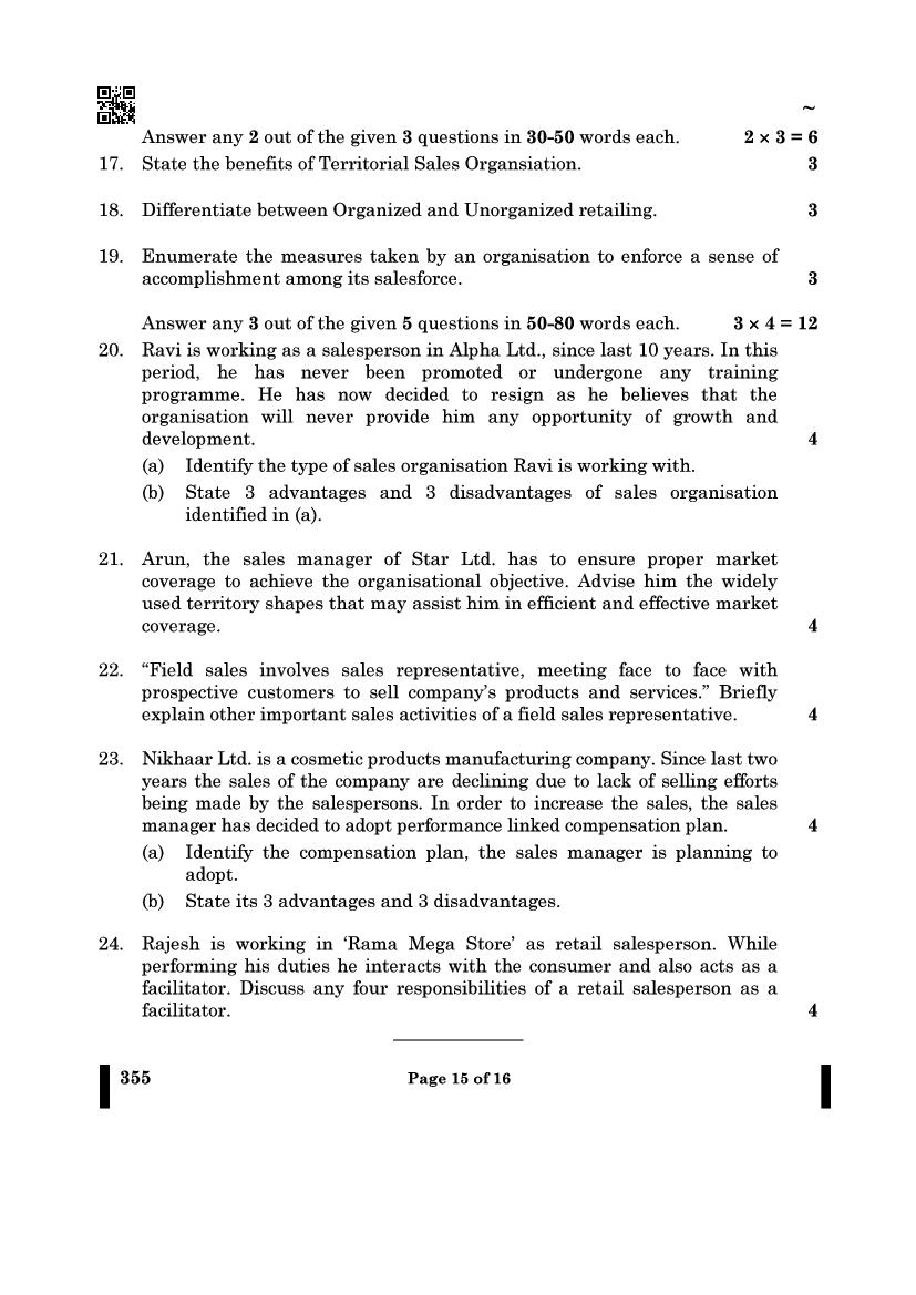 More Class 12 Salesmanship Question Paper