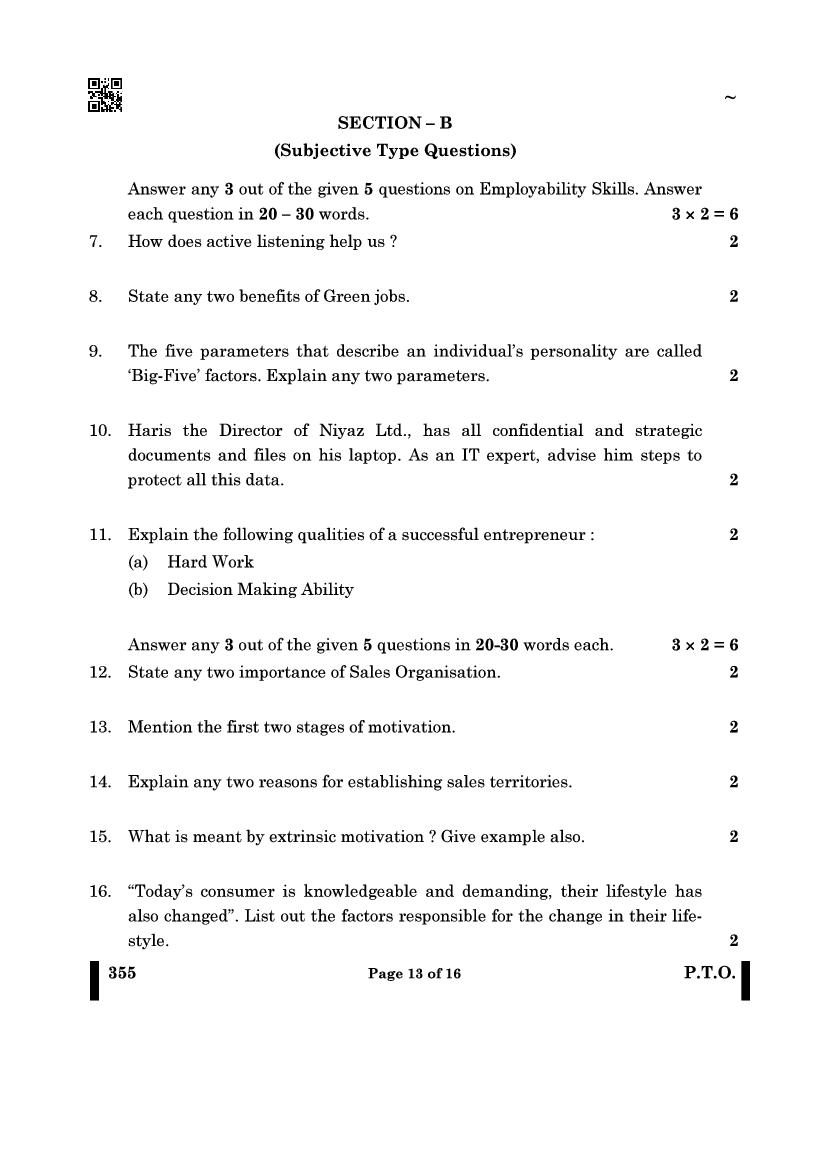 | 12 Exam | Salesmanship Question Paper | Salesmanship Answer Key |