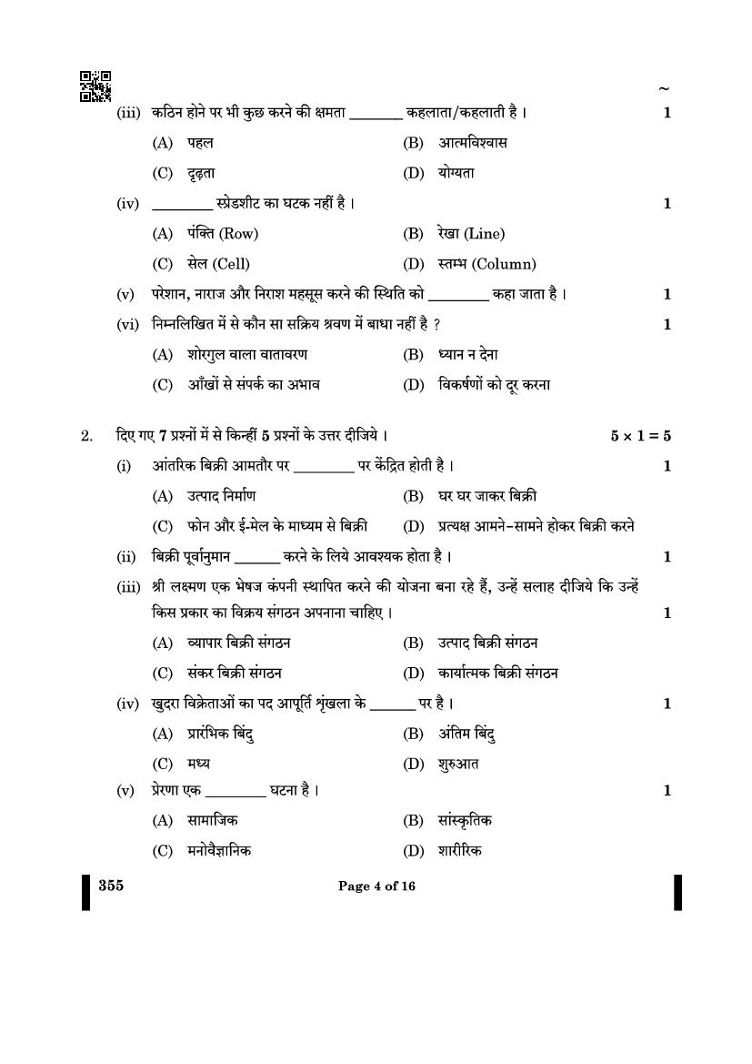 CBSE Class 12 Salesmanship Question Paper 2024 PDF Download Link – Click Here to Download Question Paper