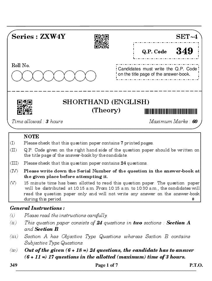 The CBSE question paper for class 12 Shorthand of the exam held in past years is as follows.