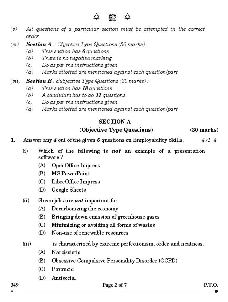 CBSE Class 12 Question Paper