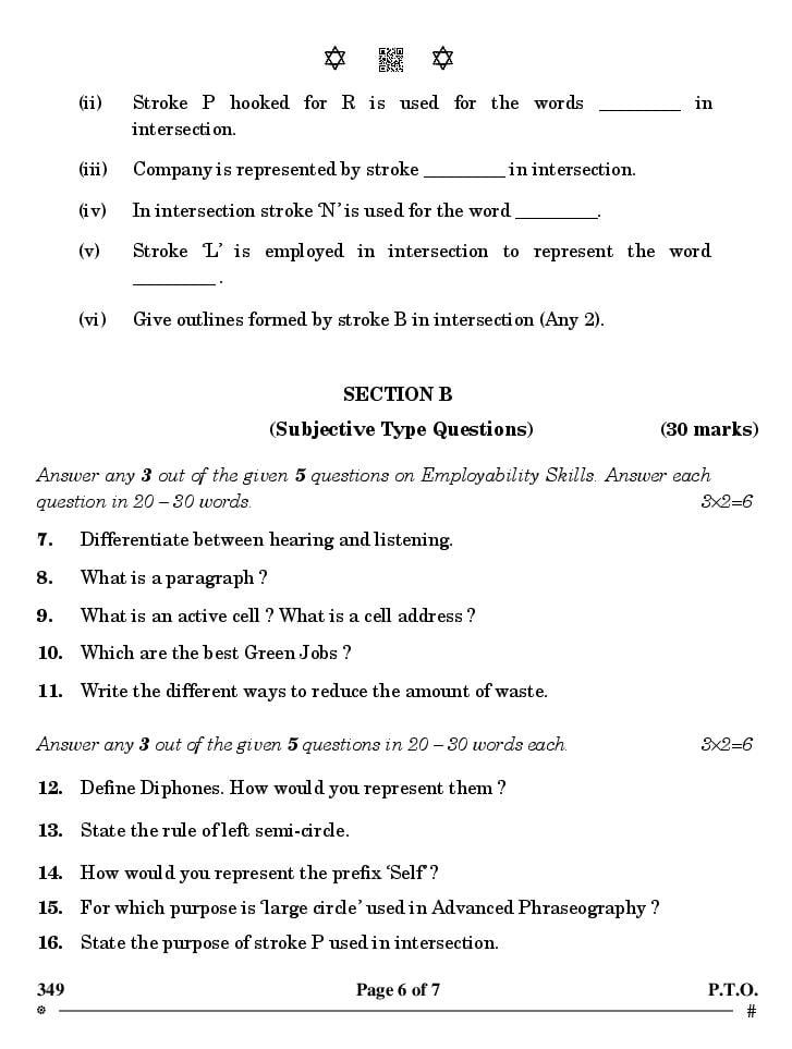More Class 12 Shorthand Question Paper