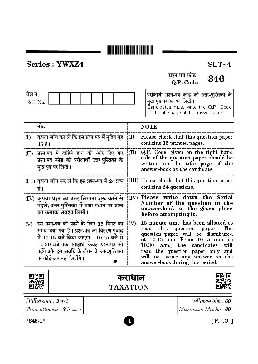 CBSE Class 12 Question Paper 2025 Taxation View Download