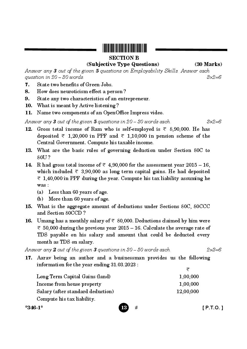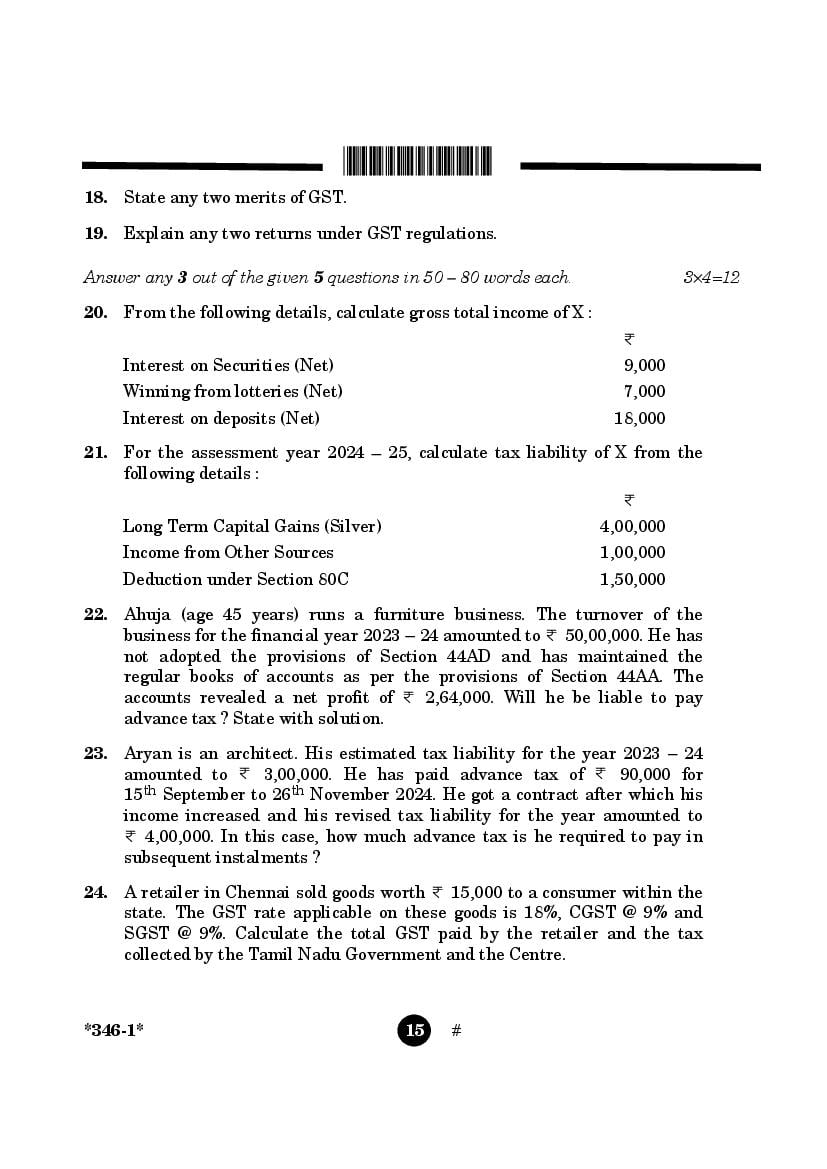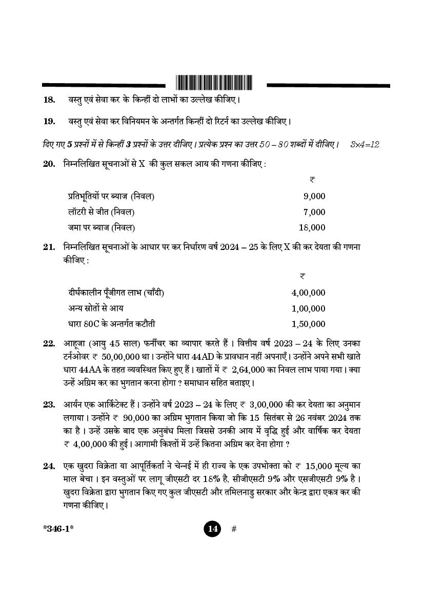 More Class 12 Taxation Question Paper