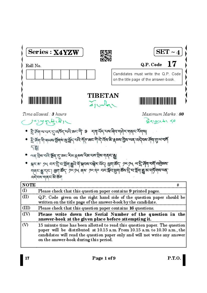 | Study Material Here | CBSE Class 12 Tibetan Previous Year Question Paper |