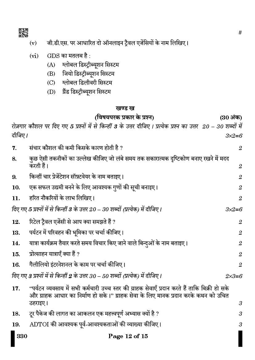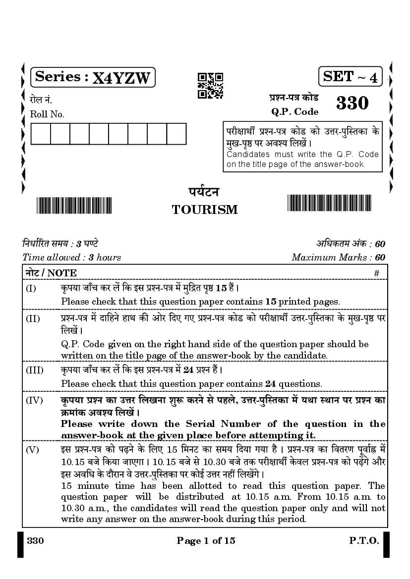 CBSE Class 12 Question Paper 2025 Tourism View Download