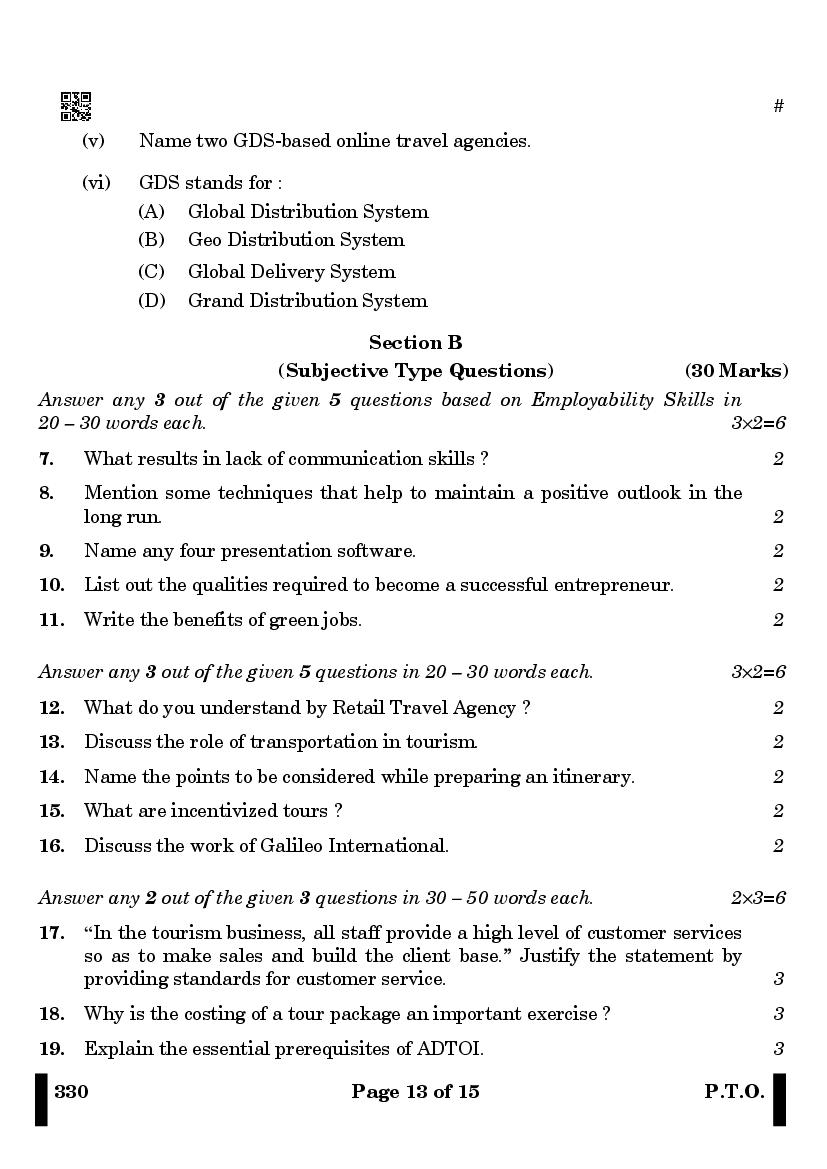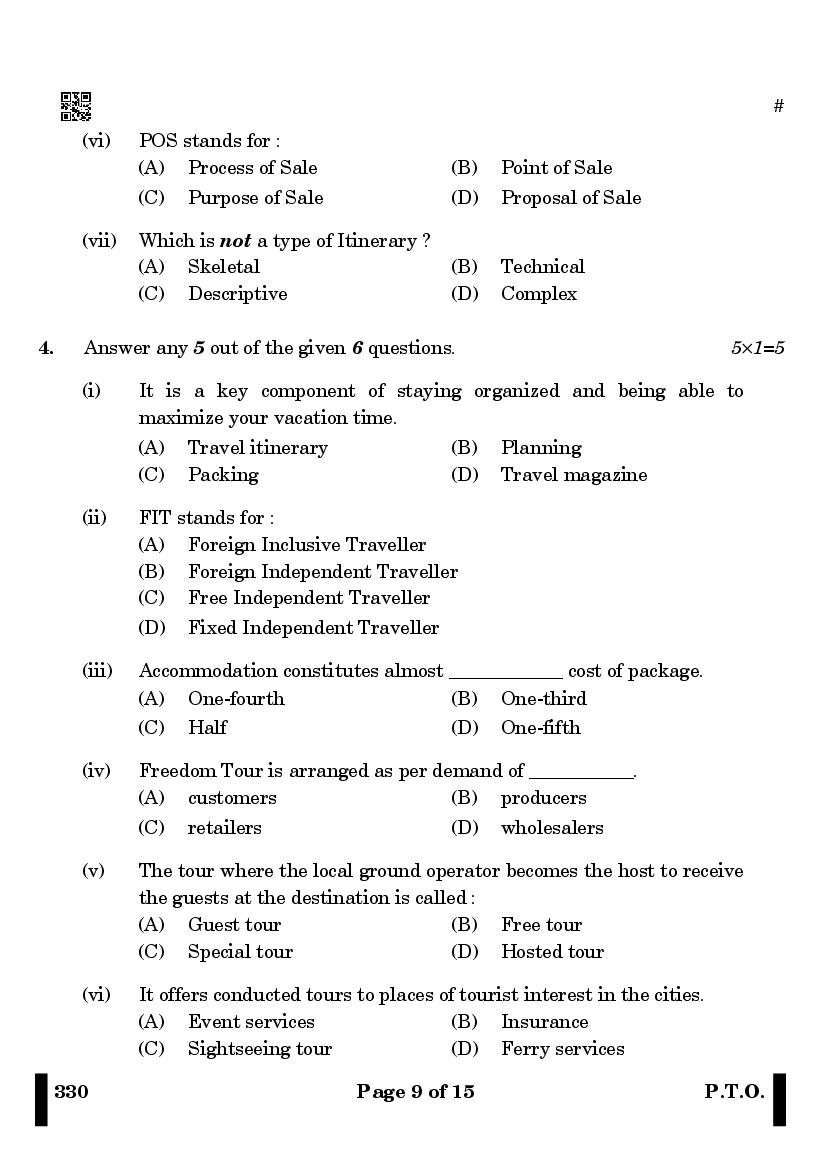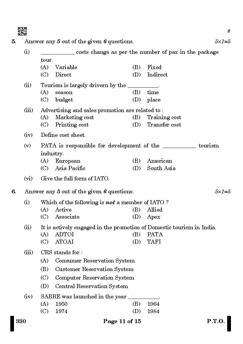| Study Material Here | CBSE Class 12 Tourism Previous Year Question Paper |