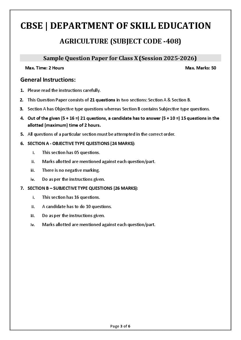 | Study Material Here | CBSE Sample Paper 2026 for Class 10 Agriculture |
