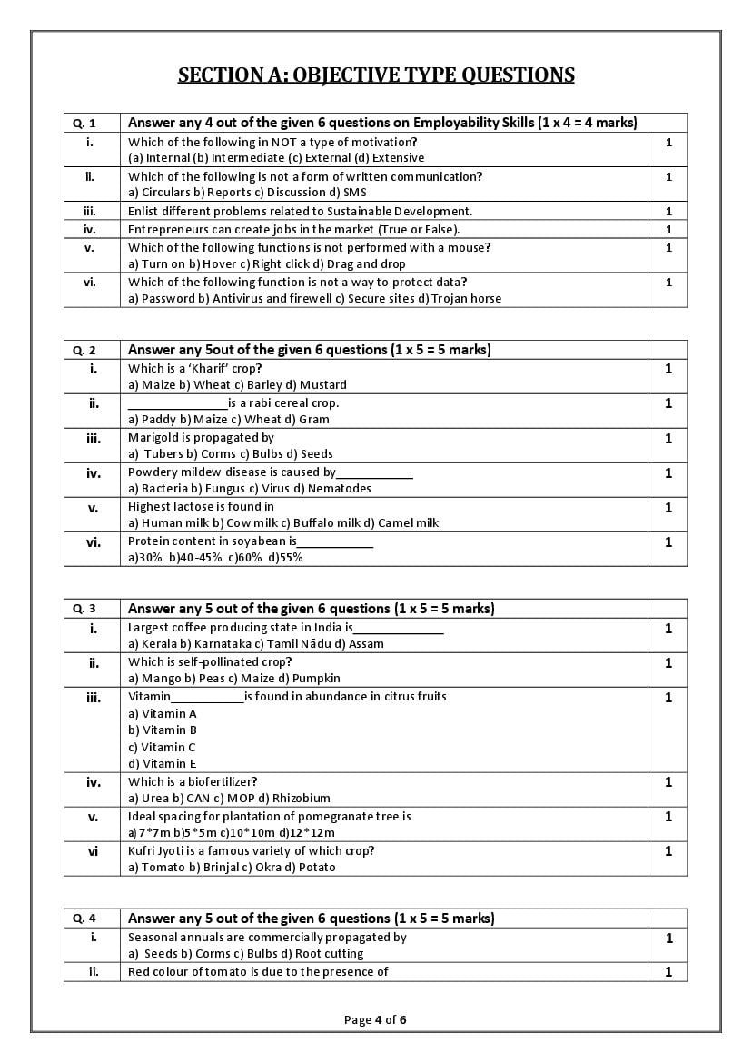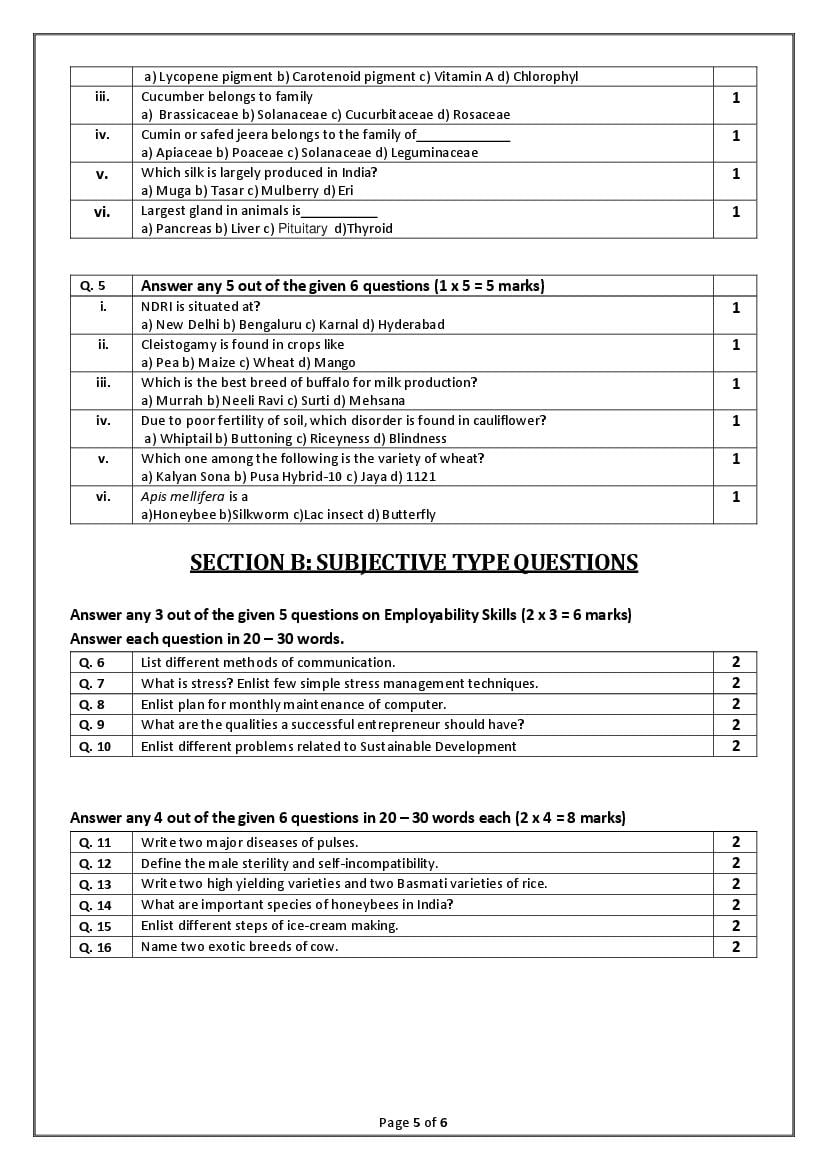 The complete CBSE class 10 Agriculture sample paper 2026 is as follows. However the download link for cbse sample paper Agriculture class 10 marking scheme is given above.
