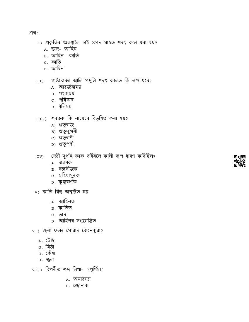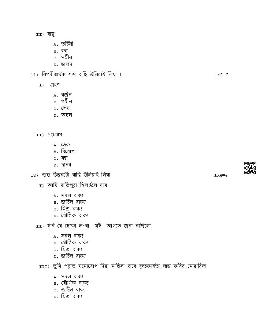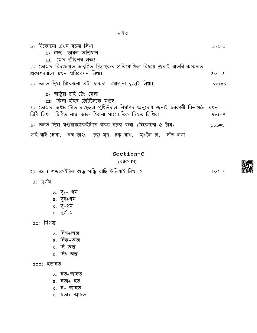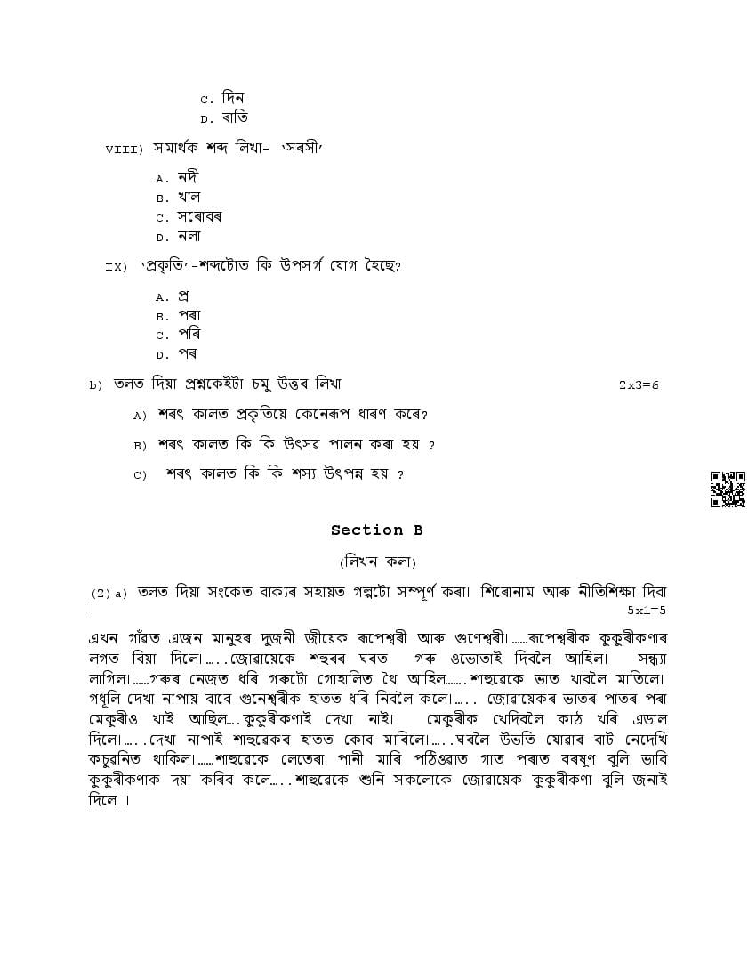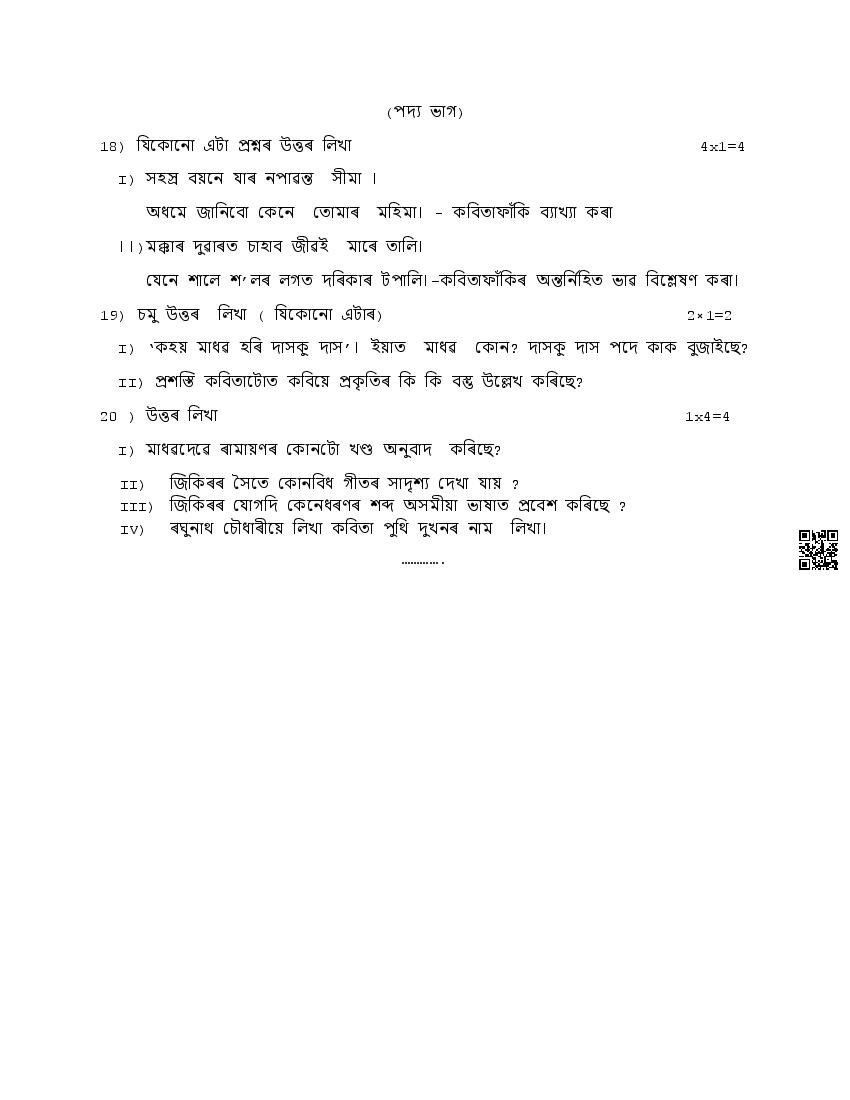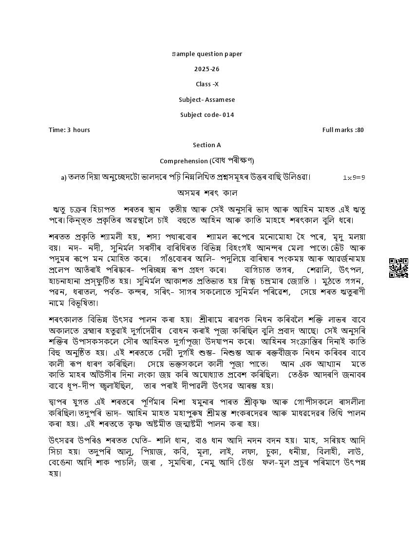 The complete CBSE class 10 Assamese sample paper 2026 is as follows. However the download link for cbse sample paper Assamese class 10 marking scheme is given above.
