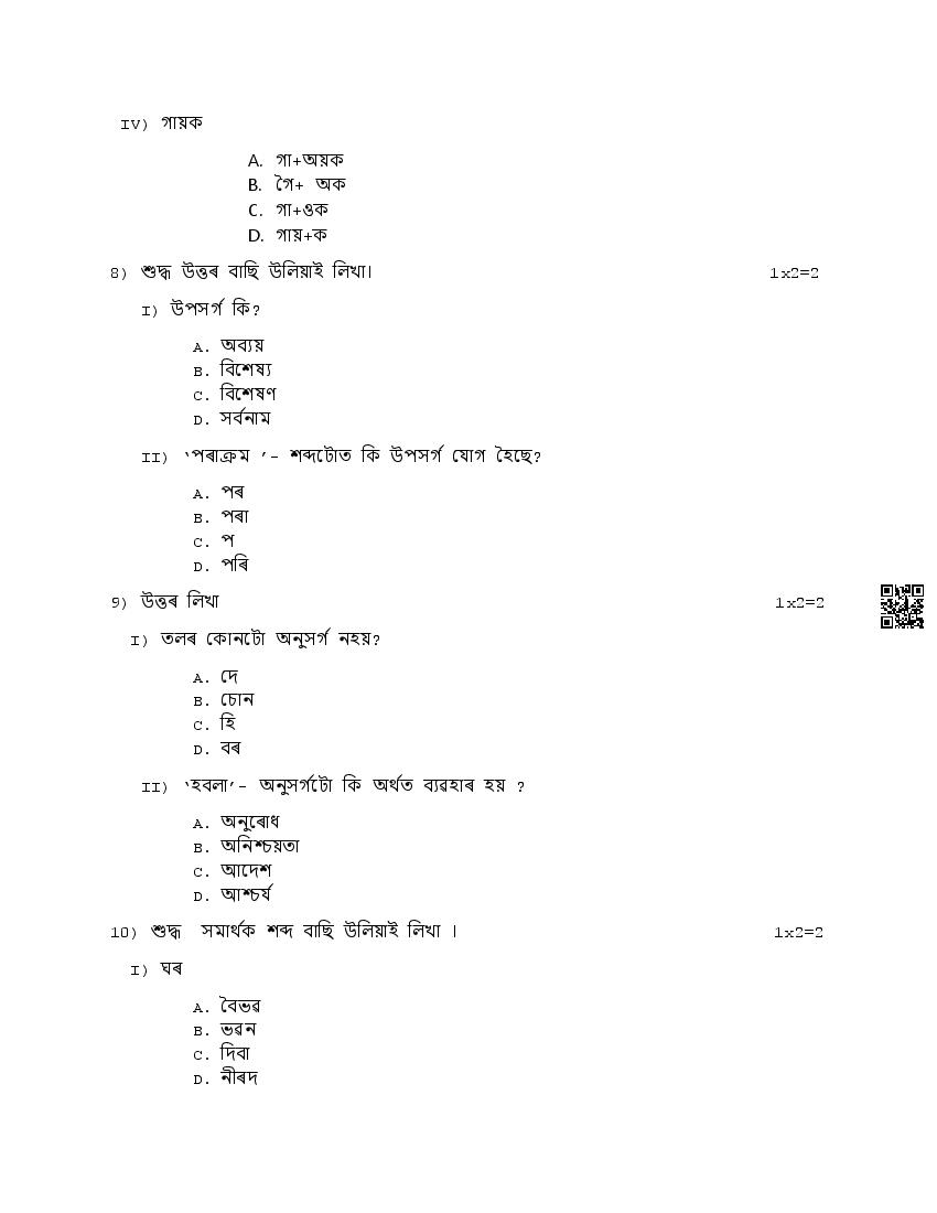 - The class 10 sample paper solutions for Assamese subject includes the correct answers of all questions asked in the model question paper.