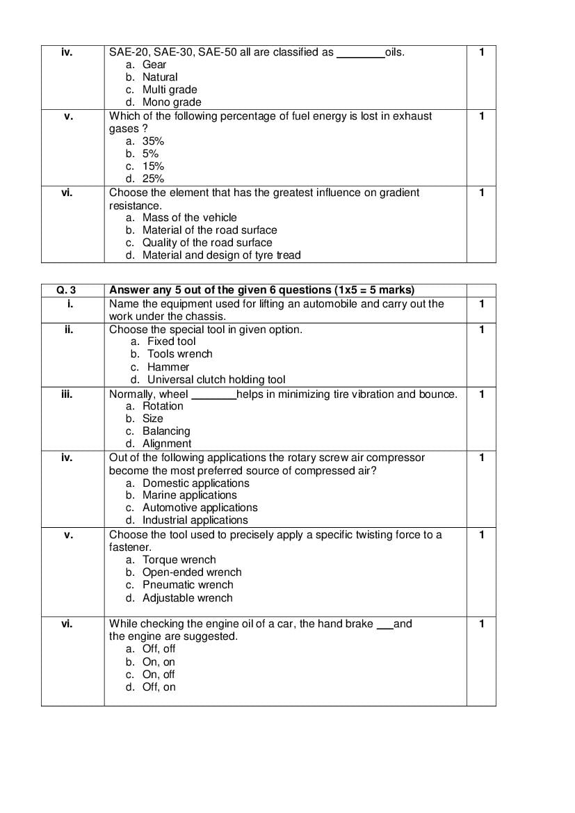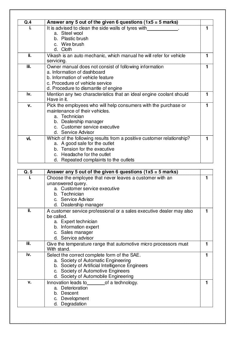 Class 10 Automotive Sample Paper With Solutions 2026