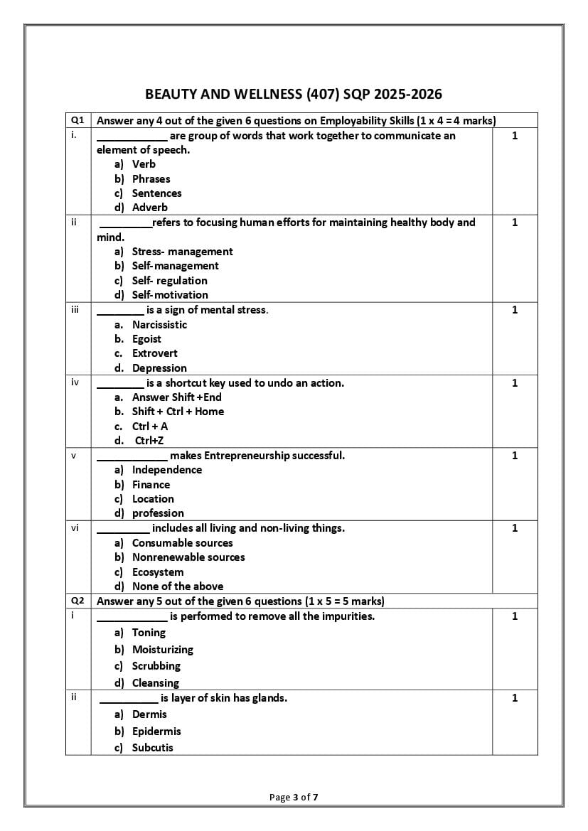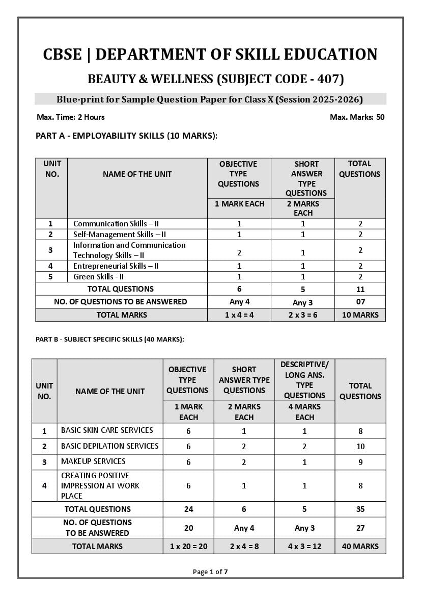 | Study Material Here | CBSE Sample Paper 2026 for Class 10 Beauty and Wellness |