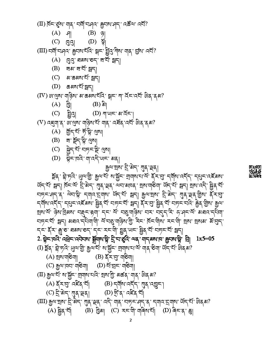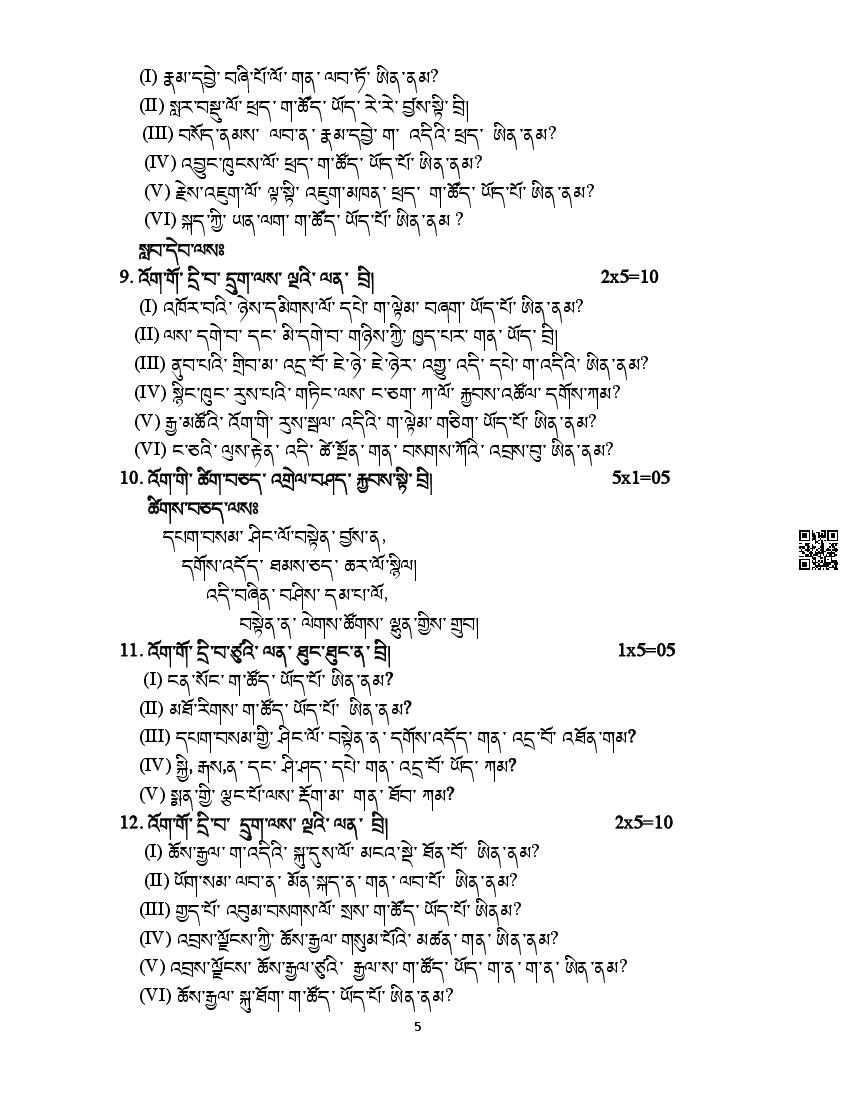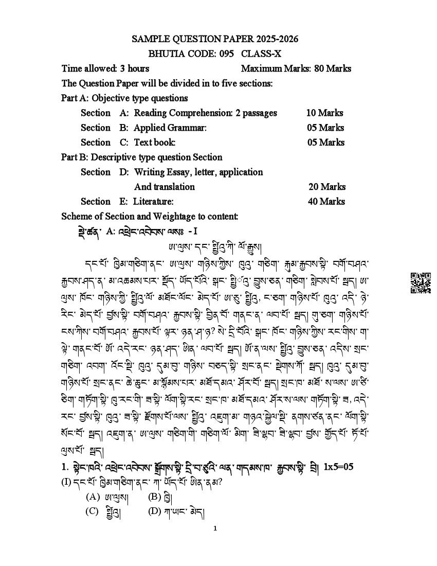 The complete CBSE class 10 Bhutia sample paper 2026 is as follows. However the download link for cbse sample paper Bhutia class 10 marking scheme is given above.