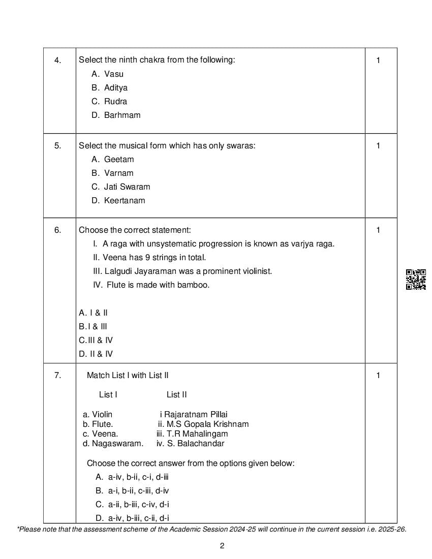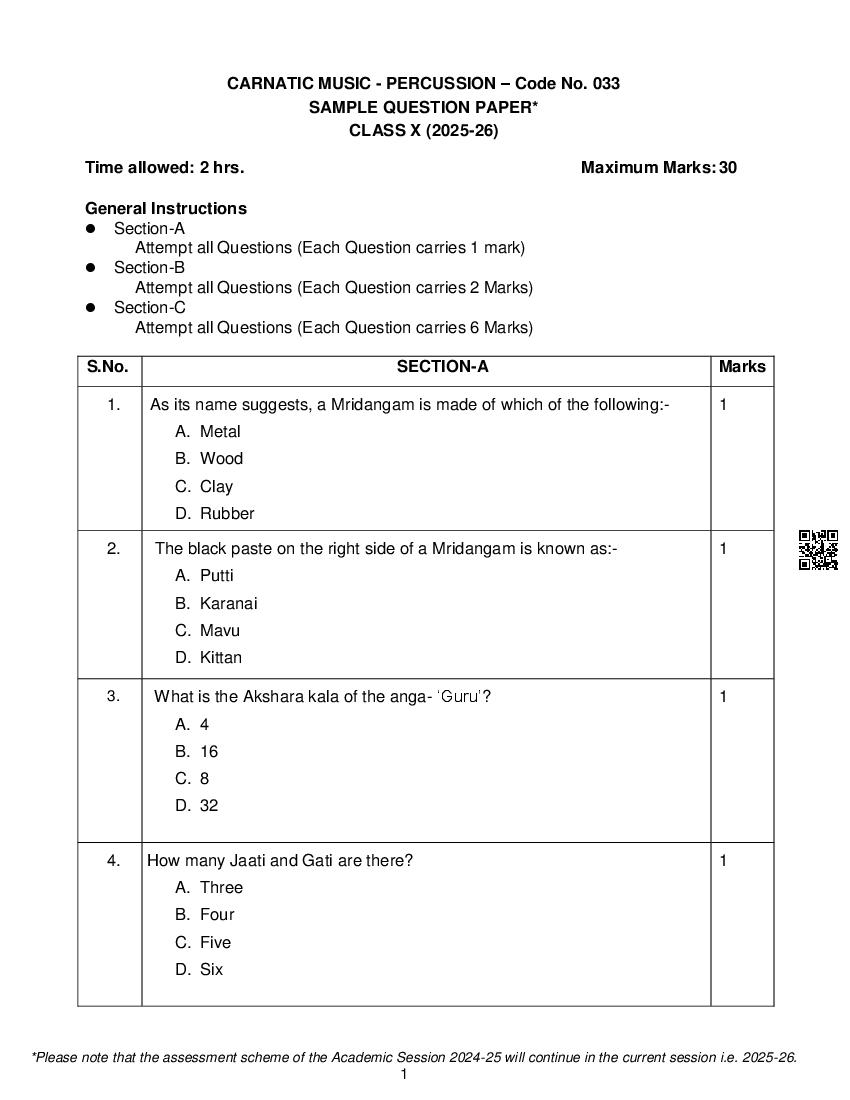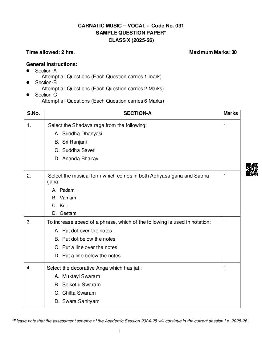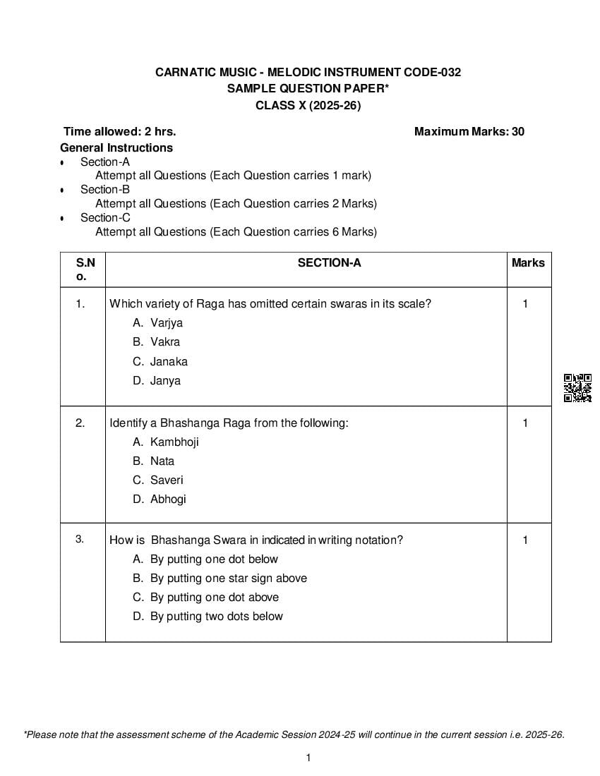 If you have any queries on CBSE Class 10 Carnatic Music Instrumental, Percussion, Vocal Sample Paper 2026, then please ask in comments below.