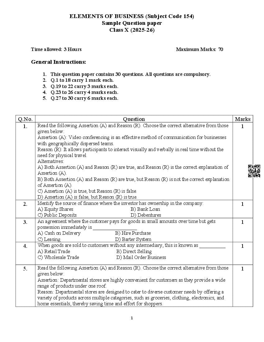 The complete CBSE class 10 Element of Business sample paper 2026 is as follows. However the download link for cbse sample paper Element of Business class 10 marking scheme is given above.