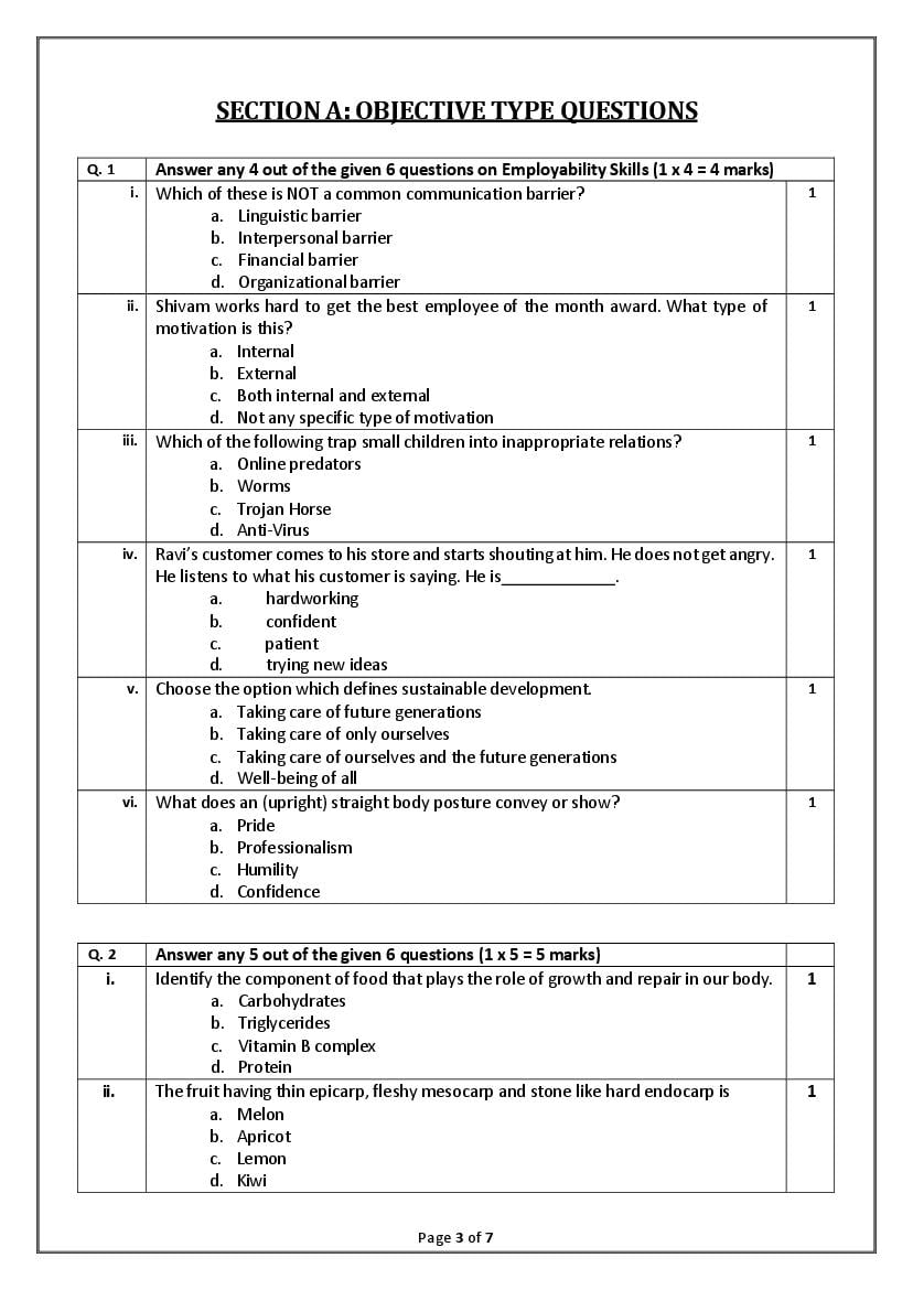 Here on this page you got the Food Production model question paper. However there are more subjects to study in 10th standard. Therefore here are the subject-wise specimen paper of CBSE for class 10 students.