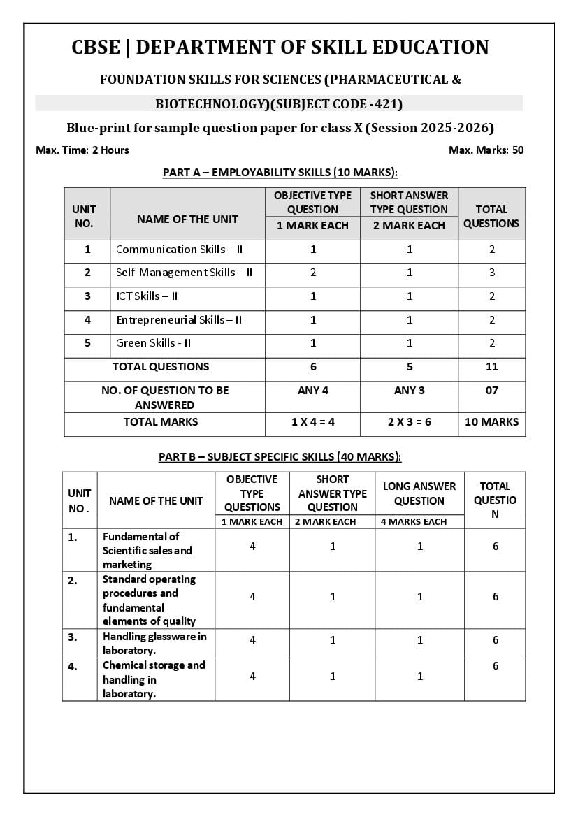 CBSE Class 10 Foundation Skills for Sciences Sample Paper 2026 PDF Download Link – Click Here to Download Sample Question Paper