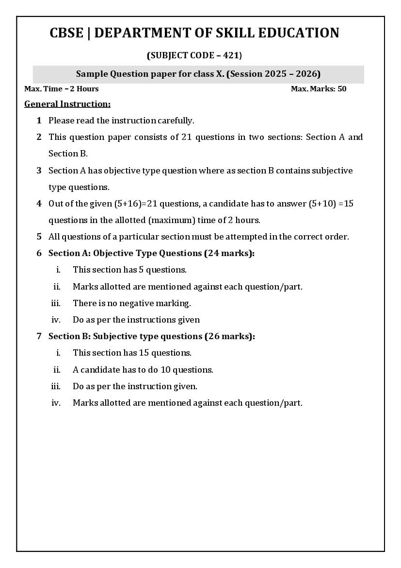 | Study Material Here | CBSE Sample Paper 2026 for Class 10 Foundation Skills for Sciences |