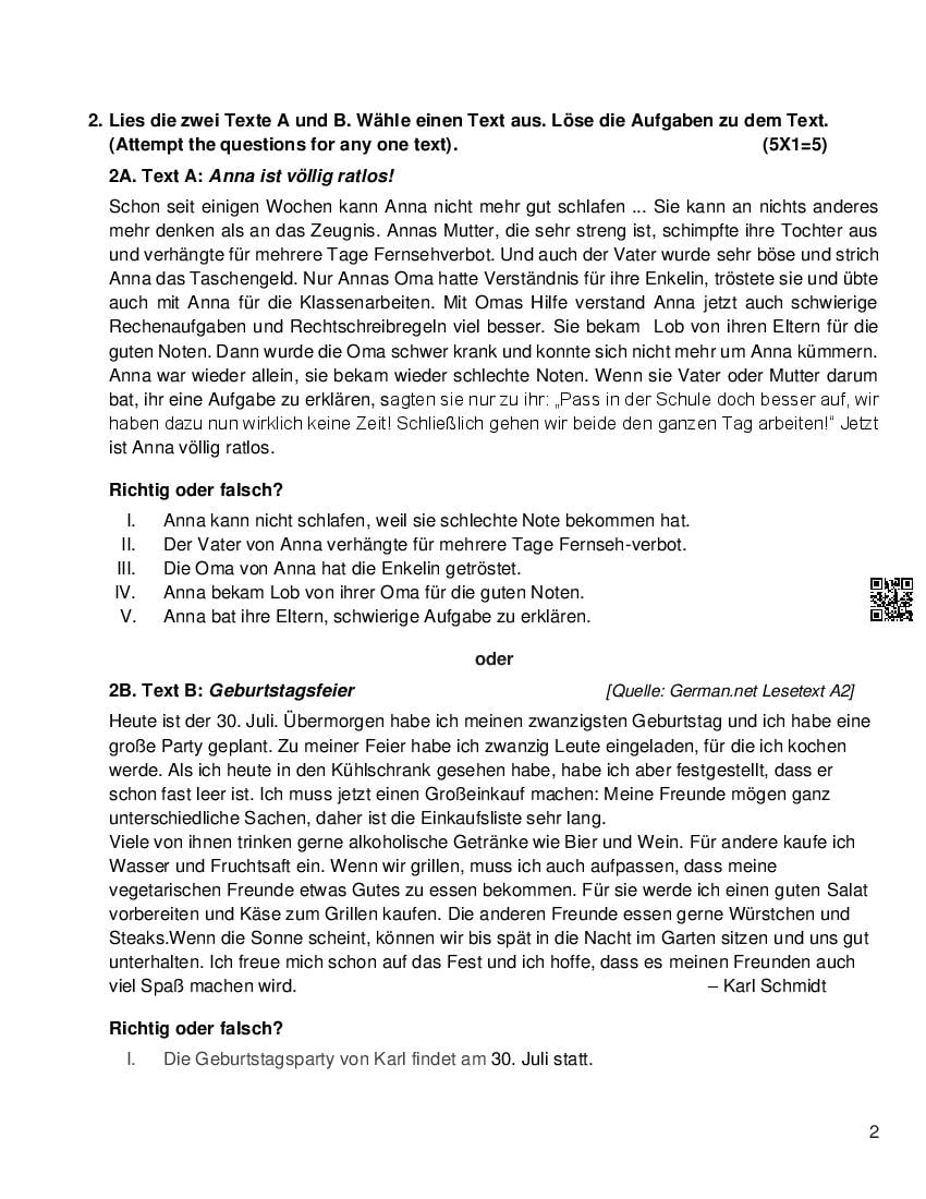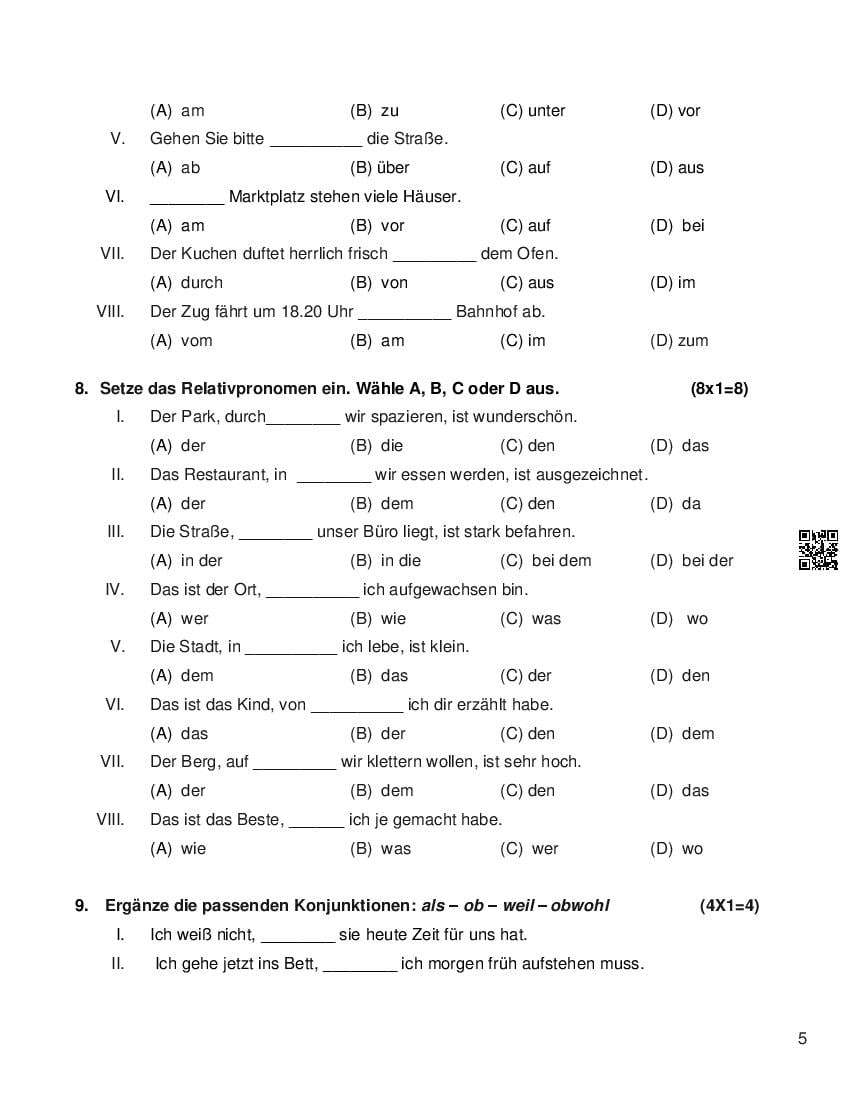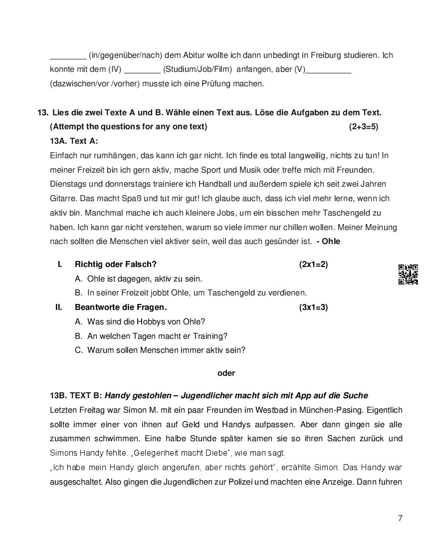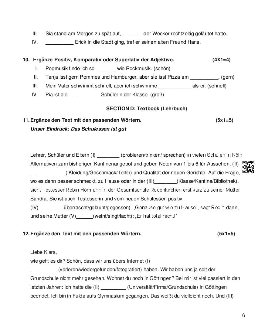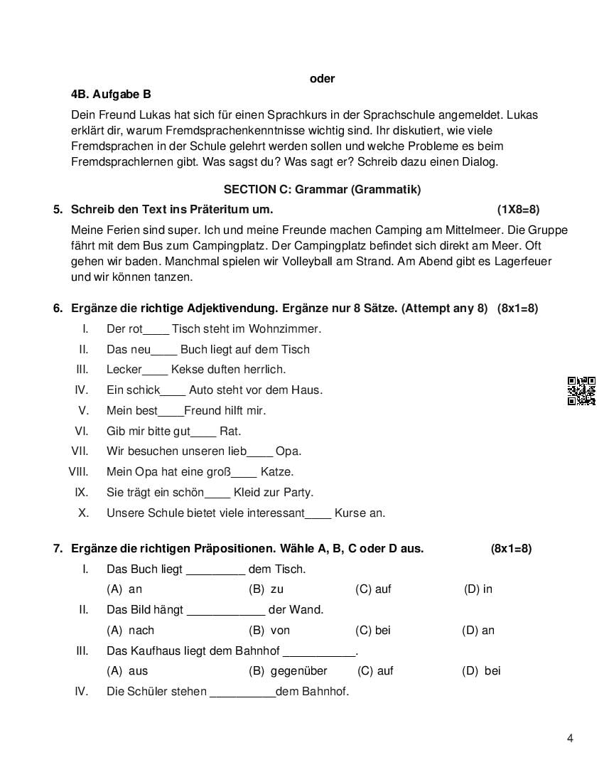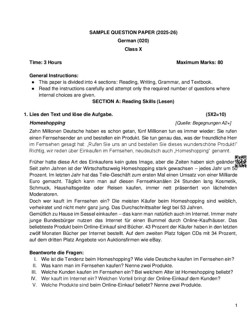 The complete CBSE class 10 German sample paper 2026 is as follows. However the download link for cbse sample paper German class 10 marking scheme is given above.