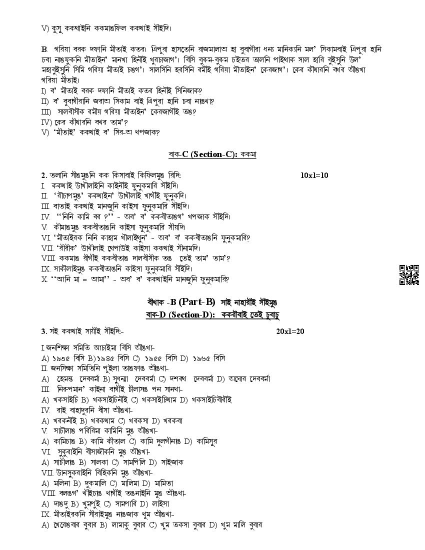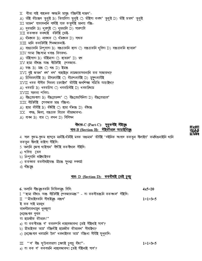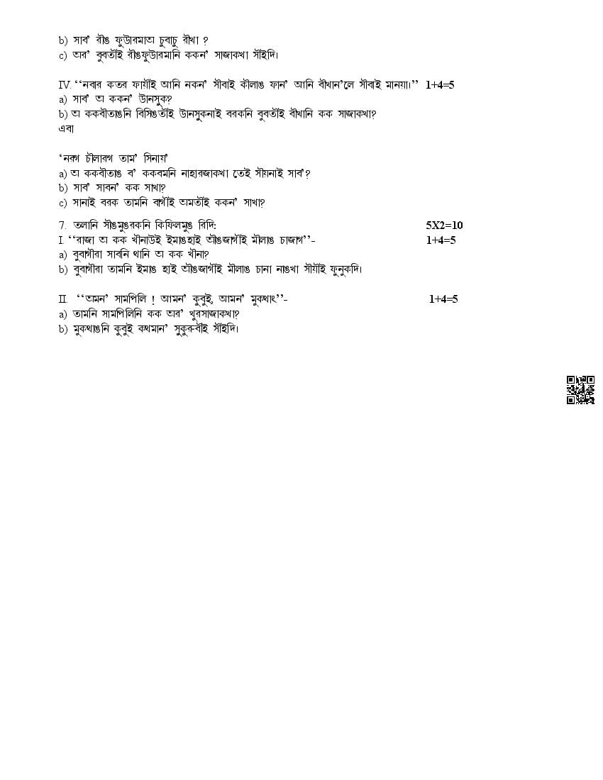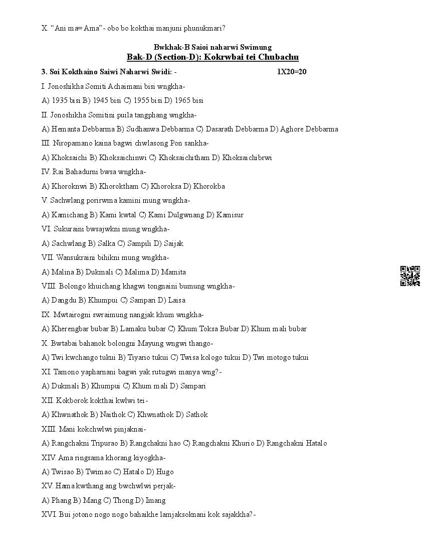 The complete CBSE class 10 Kokborok sample paper 2026 is as follows. However the download link for cbse sample paper Kokborok class 10 marking scheme is given above.