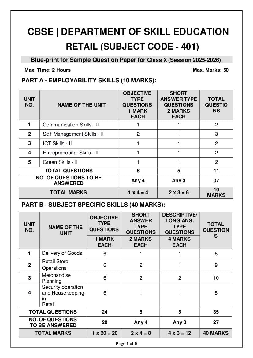 | Study Material Here | CBSE Sample Paper 2026 for Class 10 Retail |