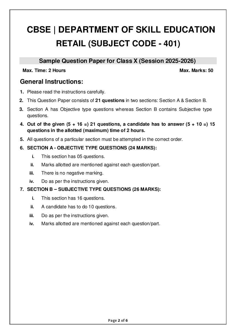 The complete CBSE class 10 Retail sample paper 2026 is as follows. However the download link for cbse sample paper Retail class 10 marking scheme is given above.
