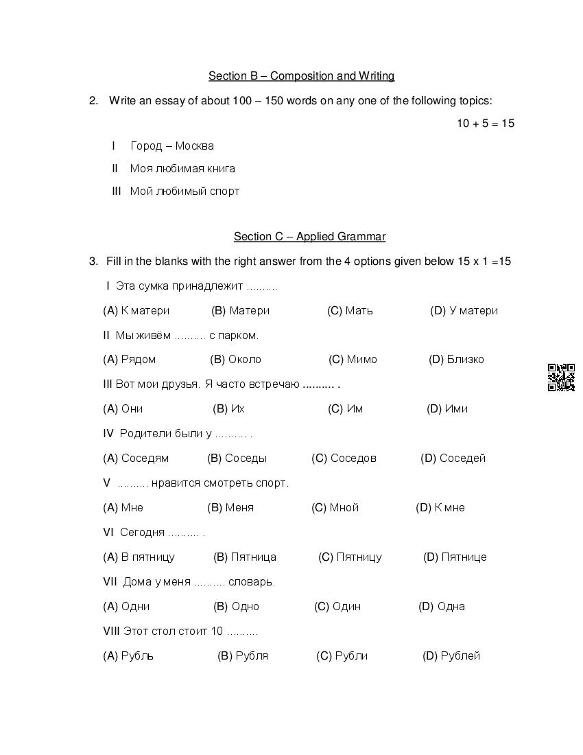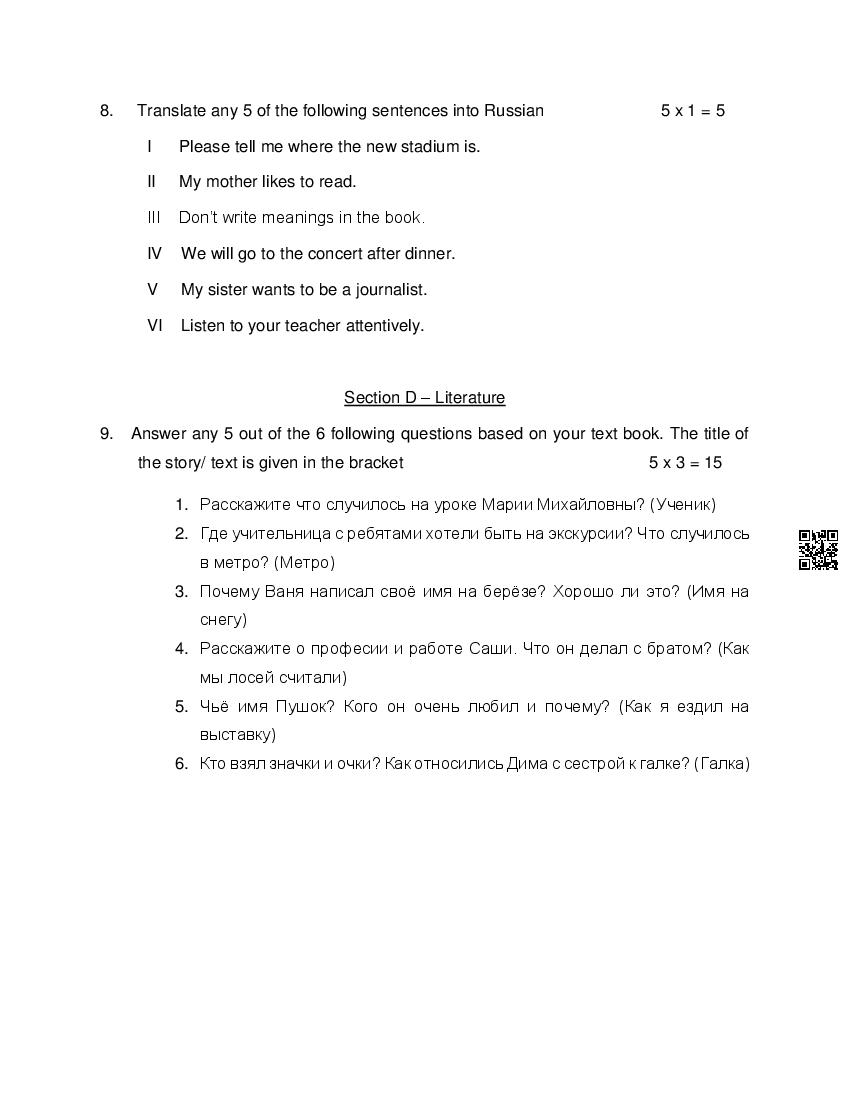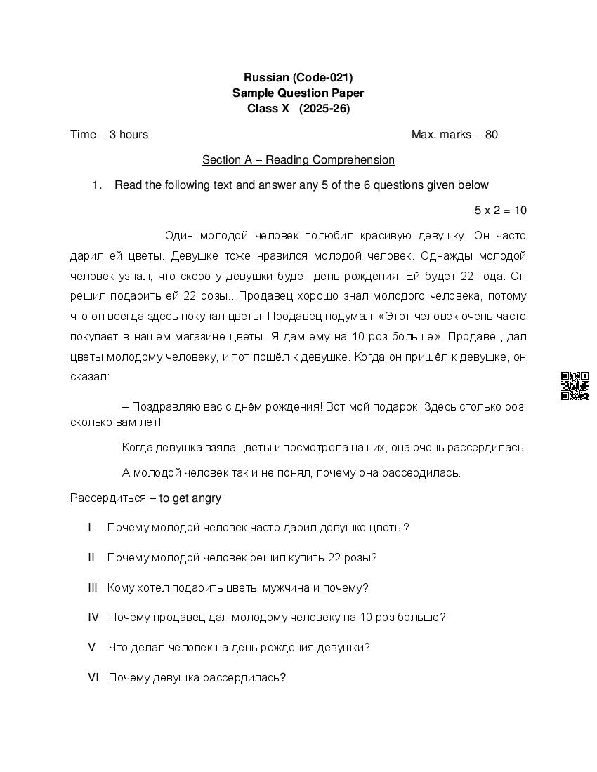 The complete CBSE class 10 Russian sample paper 2026 is as follows. However the download link for cbse sample paper Russian class 10 marking scheme is given above.